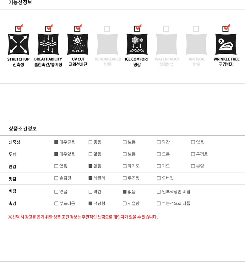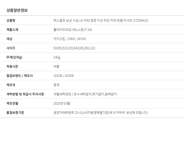 | 6. 세탁방법 및 취급시 주의사항 | 개별세탁권장/온수세탁금지,화기금지,표백금지 |