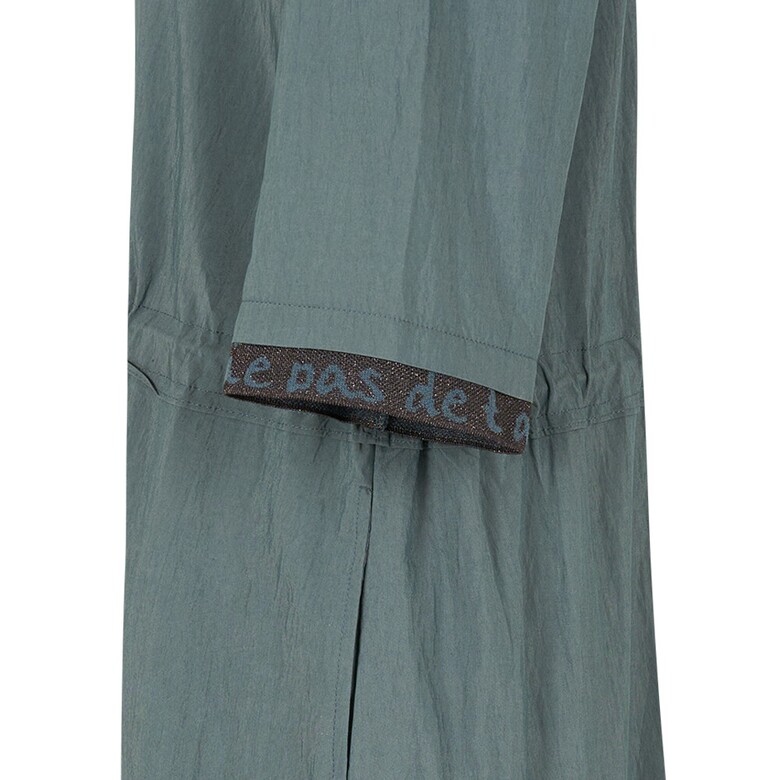 니트 장식에 후드 원피스 입니다. 후드와 소매에 니트 테이프 장식이 여성스럽게 들어간 디자인으로 허리 스트링으로 시루엣에 볼륨감을 준 디자인입니다.