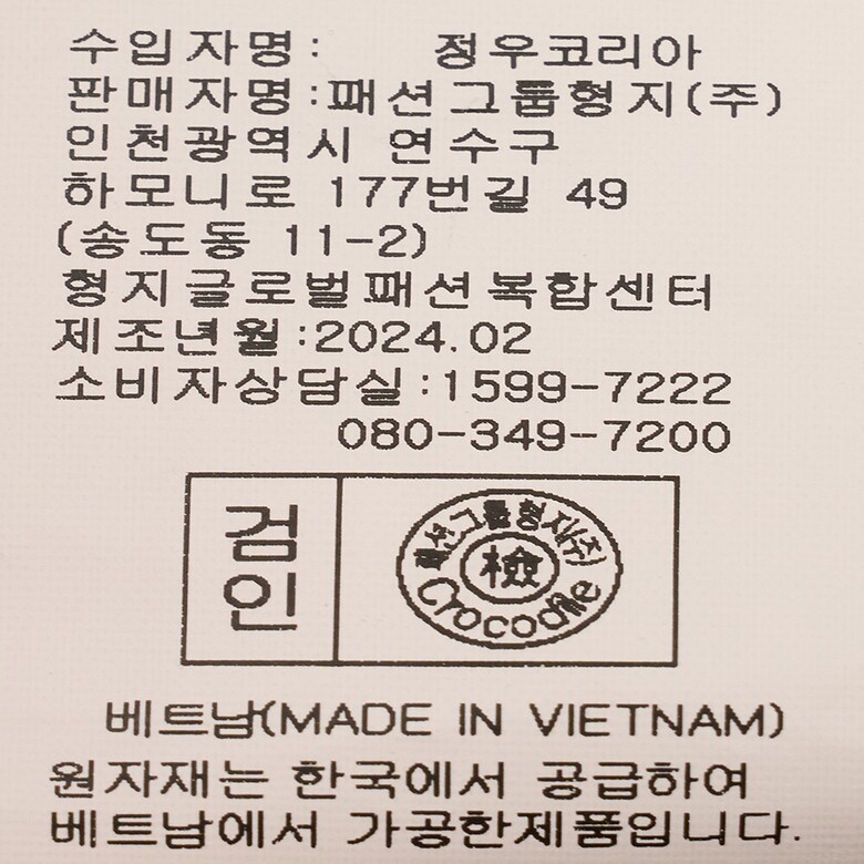 | 1. 제품 소재 (섬유의 조성 또는 혼용률을 백분율로 표시, 기능성인 경우 성적서 또는 허가서) | 상품상세참조 |