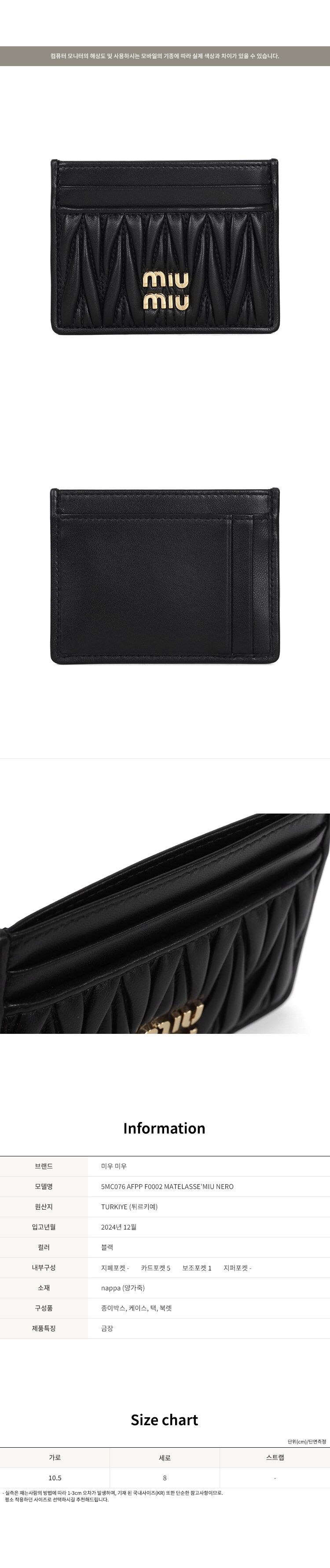 - #리본즈코리아 #5MC076AFPPF0002 #[명품] #25SS #미우미우 #블랙 #마테라쎄 #카드지갑 #5MC076 #AFPP #F0002 #여성 #지갑 #카드/명함지갑 #카드지갑홀더