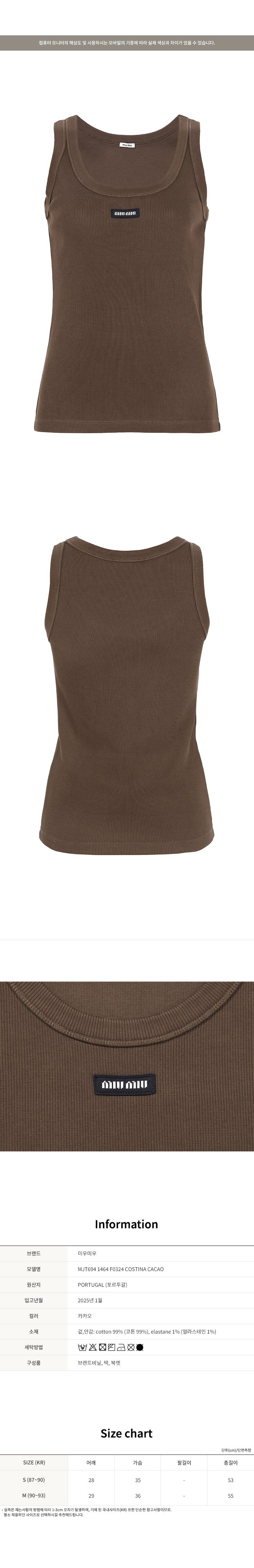 - #리본즈코리아 #MJT6941464F0324 #[명품] #25SS #미우미우 #카카오 #니트 #저지 #슬리브리스 #MJT694 #1464 #F0324 #여성 #의류 #상의 #민소매셔츠