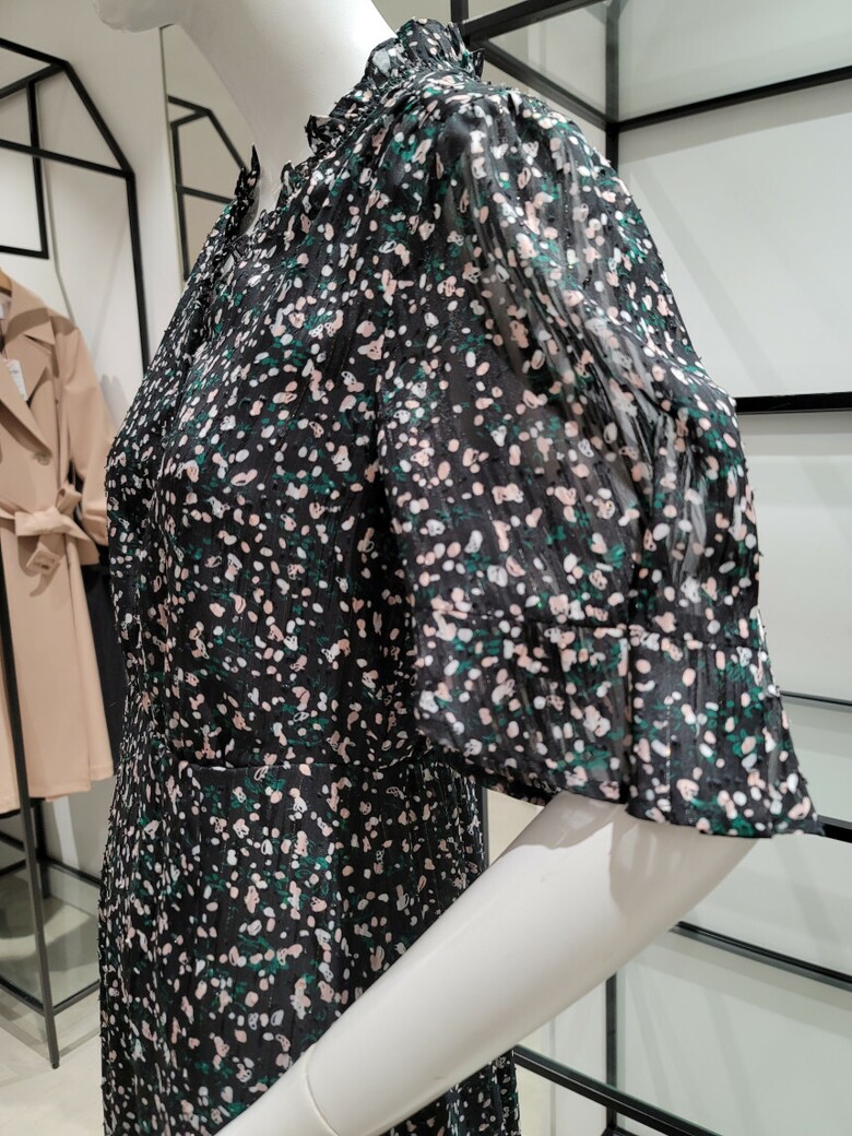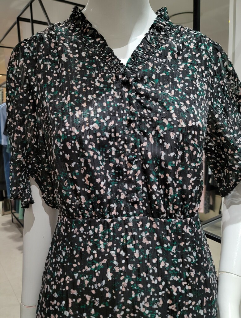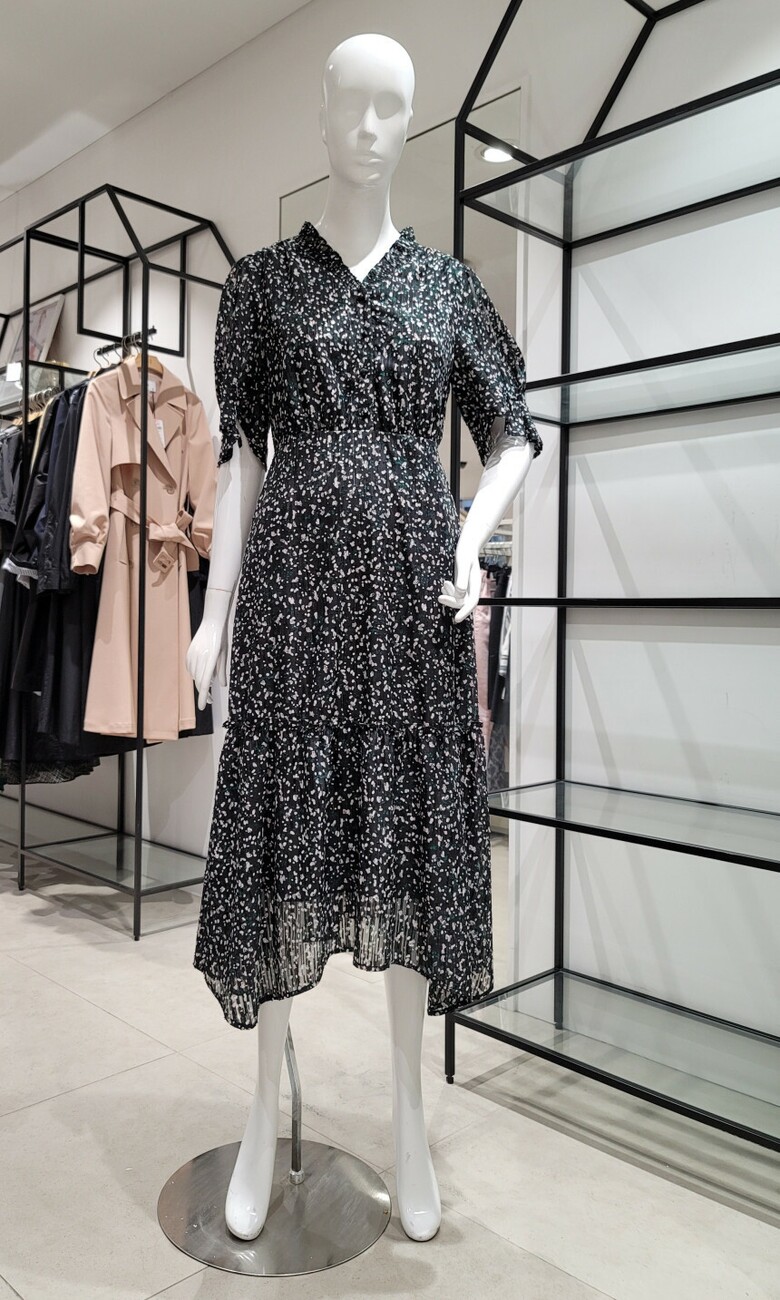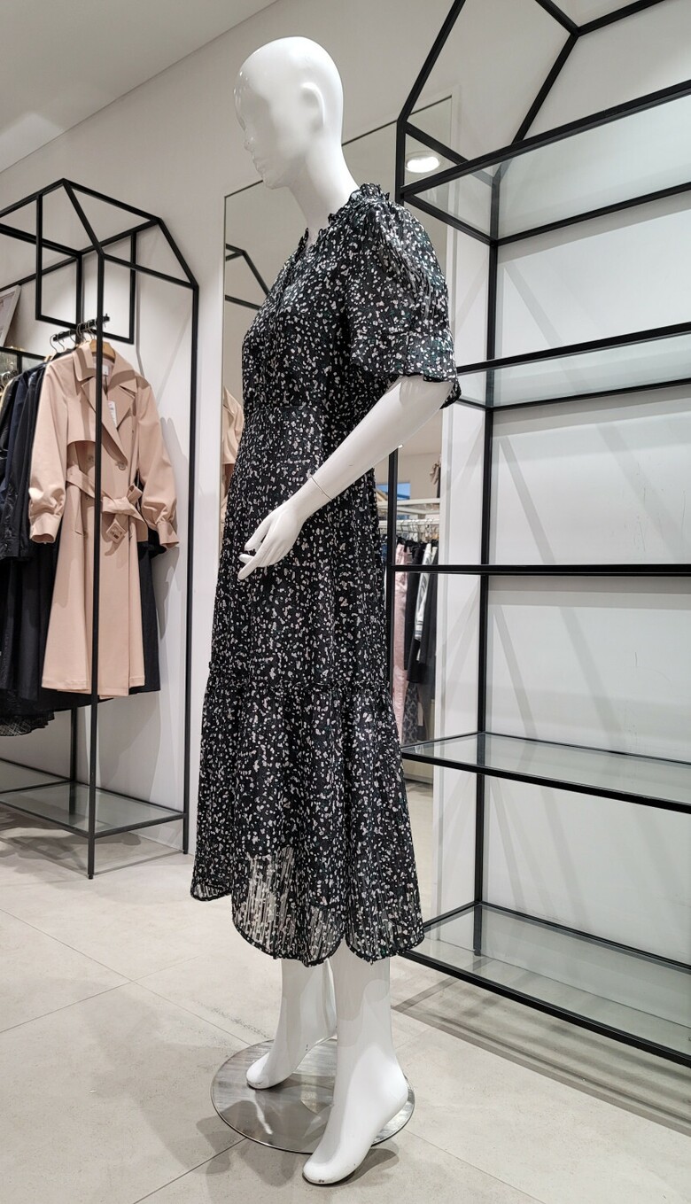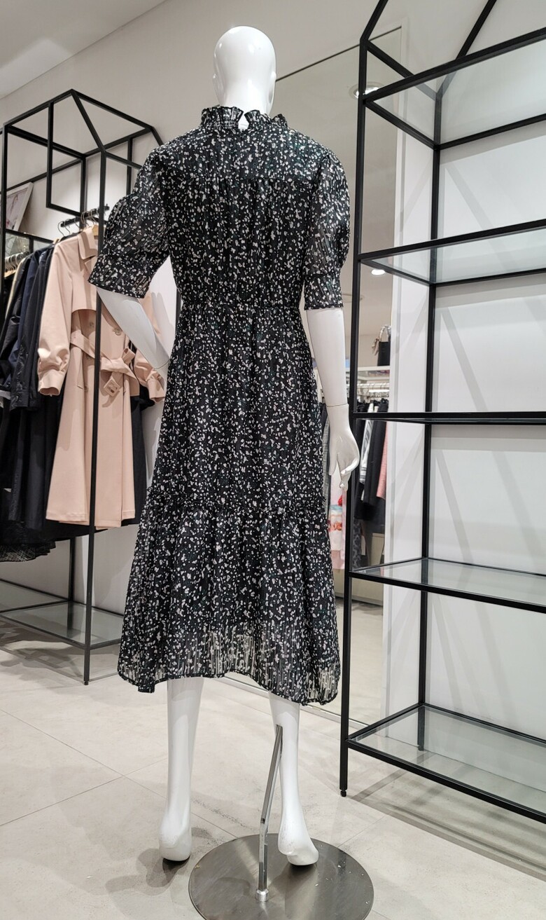 SI브이넥 프린트 러플 원피스SIOAD2501