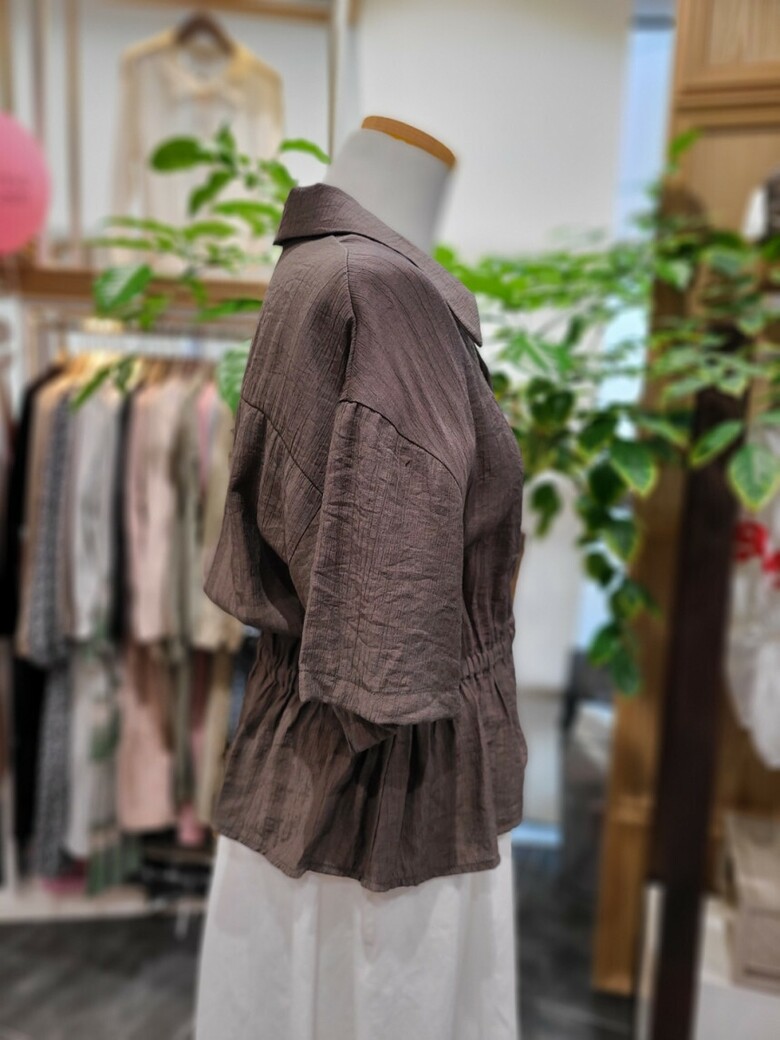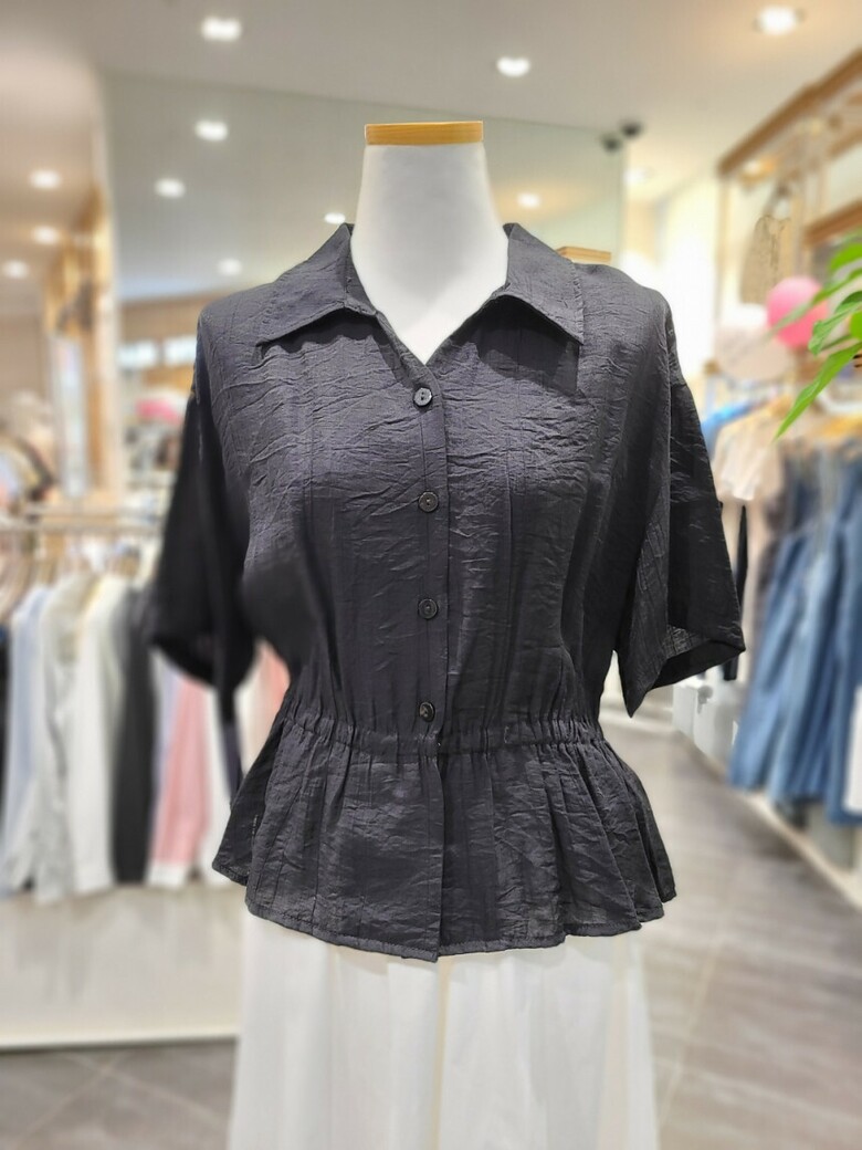 플라스틱아일랜드 허리밴딩 블라우스 PQ2WB581