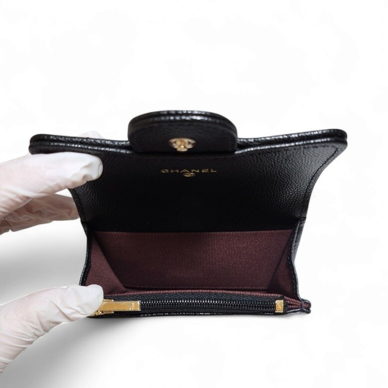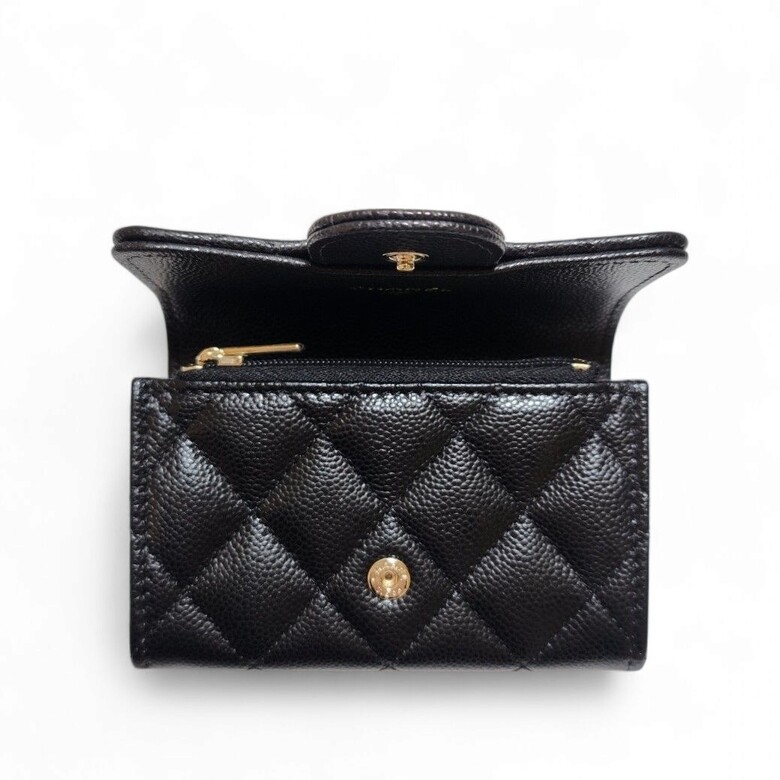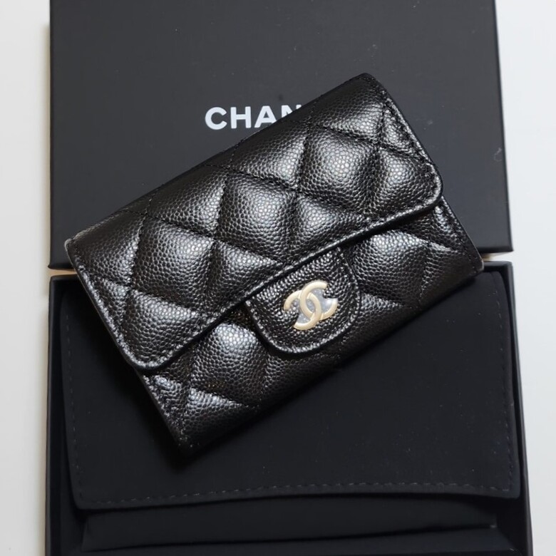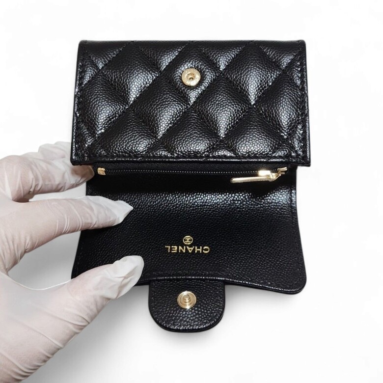 샤넬 클래식 똑딱이 카드지갑 블랙 골드메탈