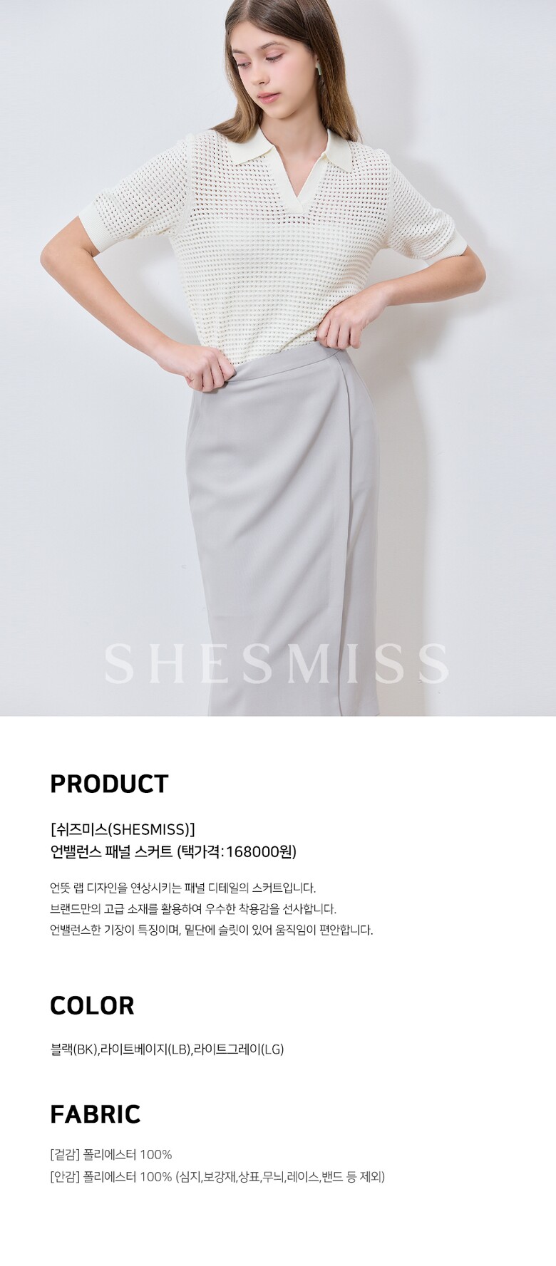 [쉬즈미스(SHESMISS)] 여성스러운 뒷밴딩 언밸런스 패널 스커트 (택가격: 168000원)