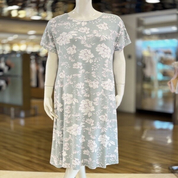 GW1926B_플라워패턴 반팔 여성 원피스잠옷 단품