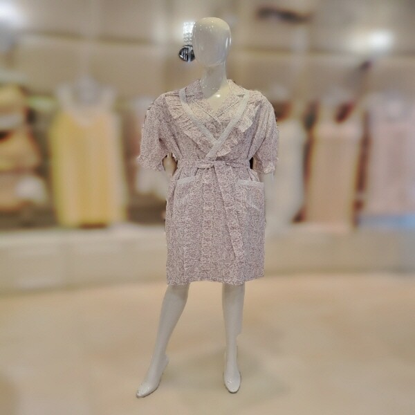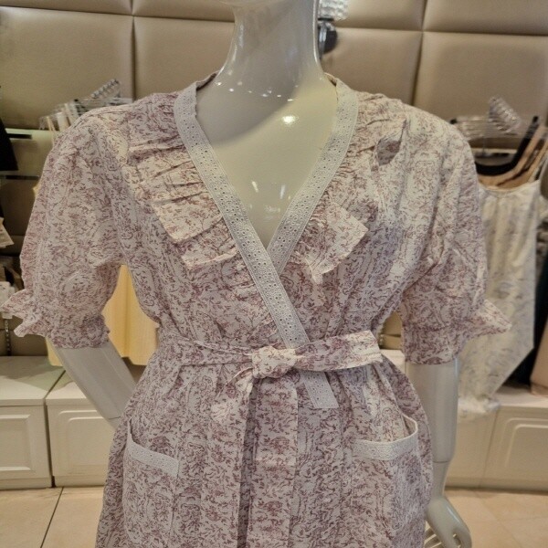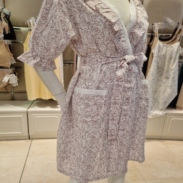 로브가운-바바라 크레이프소재 반팔로브가운시원하고 까실한소재의 면모달제품통기성 뛰어나며 밝은프린트 포인트반팔소매로브가운으로 큐트한느낌의 가벼운 로브가운