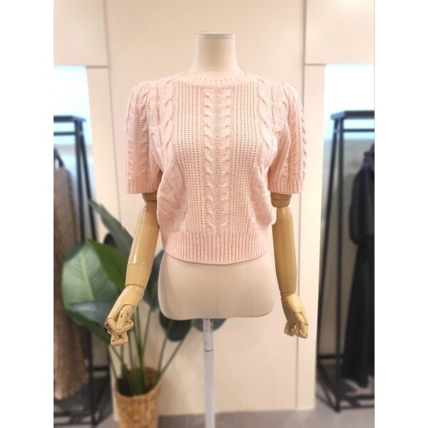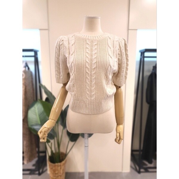 어깨 볼륨이 들어간 퍼프소매 반팔 니트입니다.