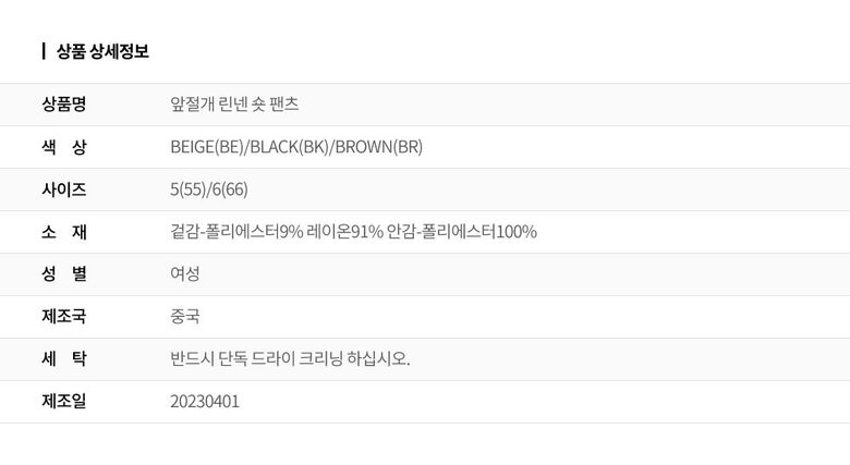 | 6. 세탁방법 및 취급시 주의사항 | 상세페이지 참조 |