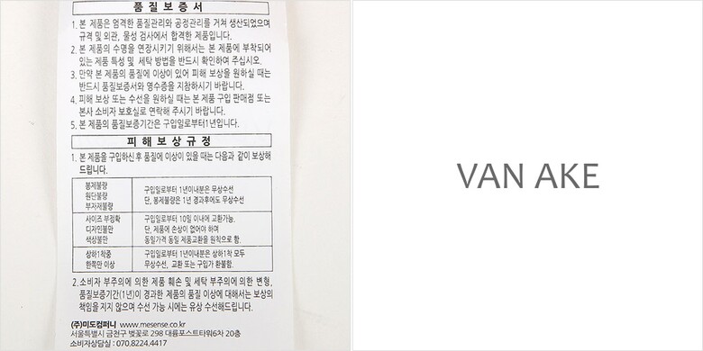 | 8. 품질보증기준 | 관련법 및 소비자분쟁해결기준에 따름 |