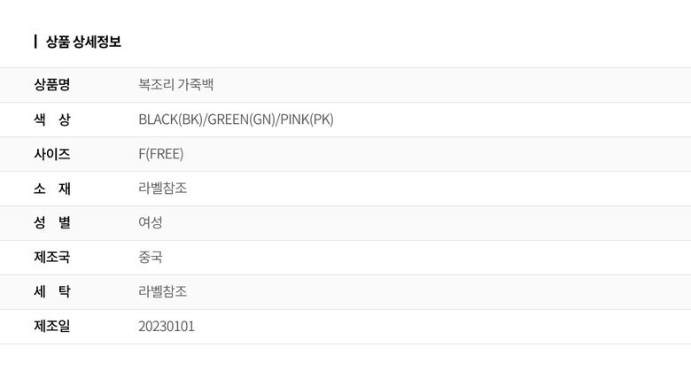 | 3. 색상 | 색상:BLACK(BK)/GREEN(GN)/PINK(PK) |