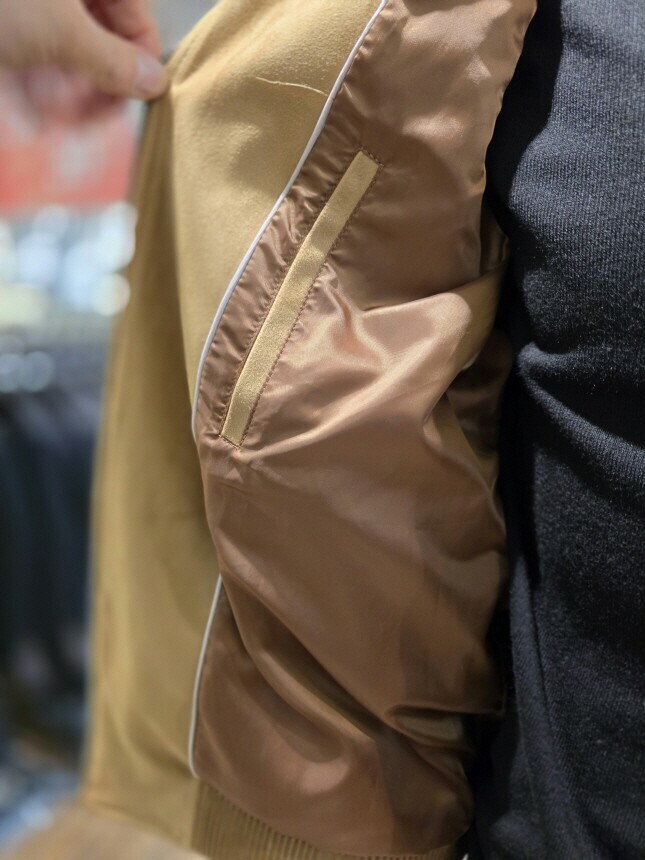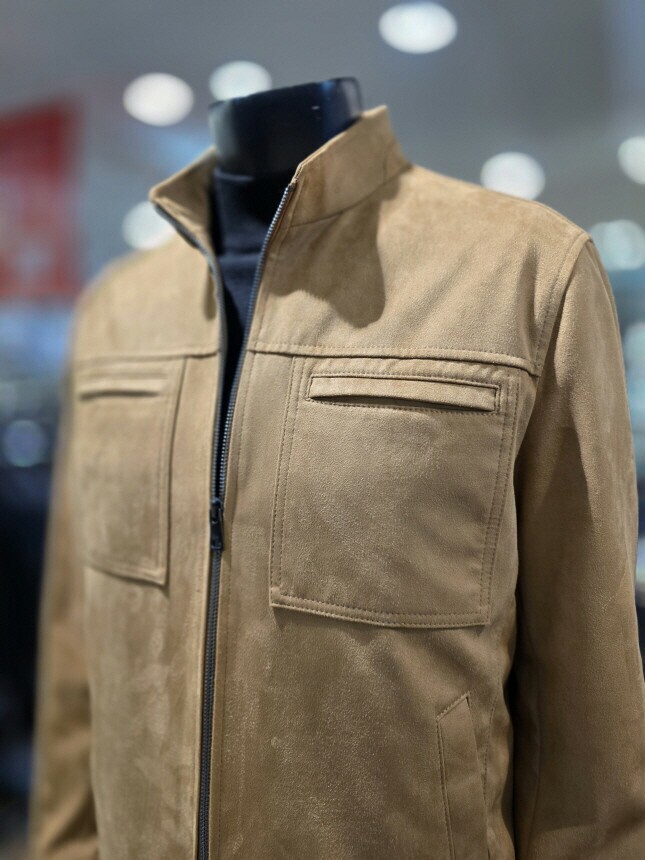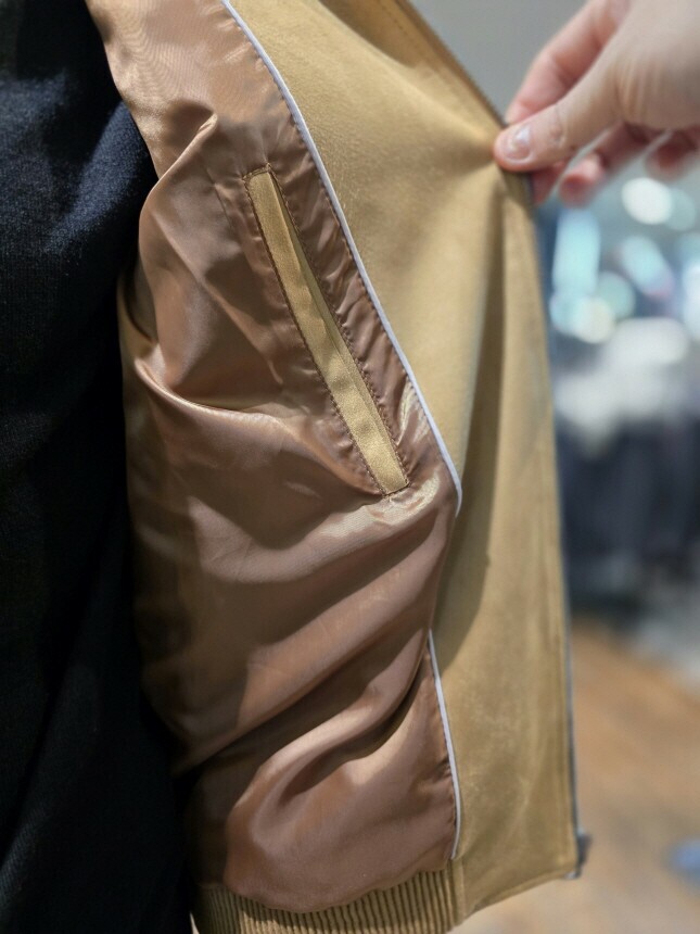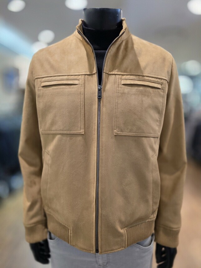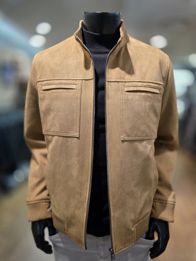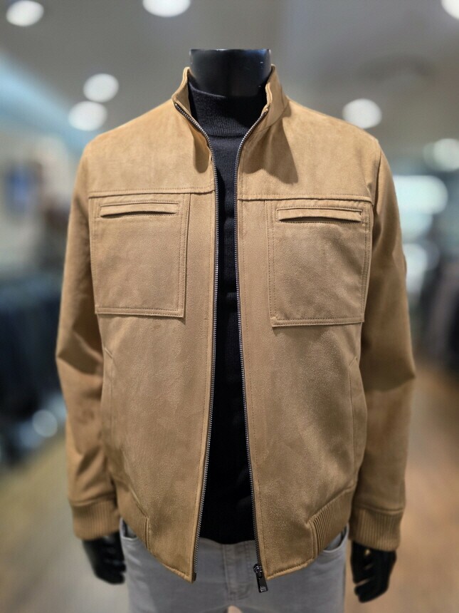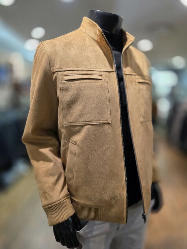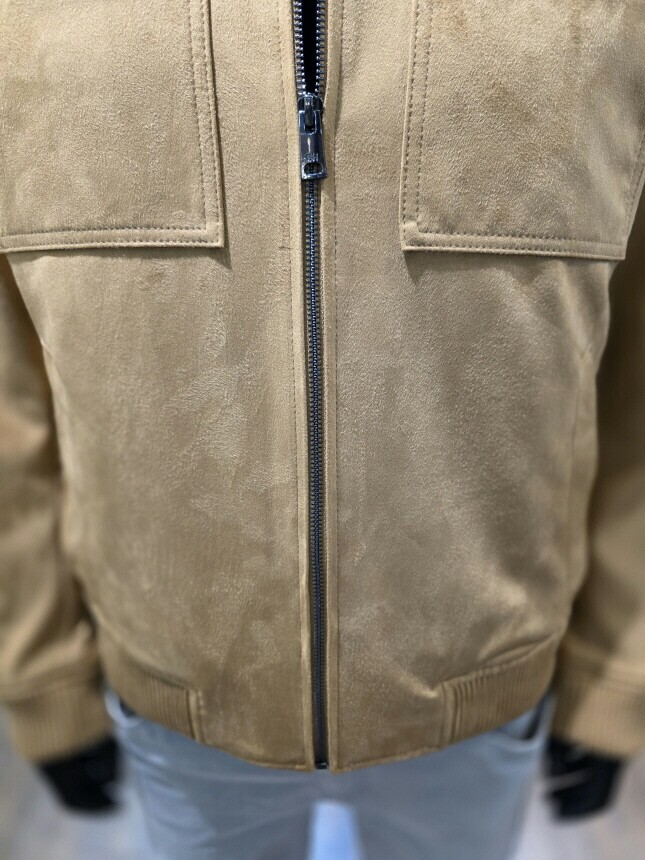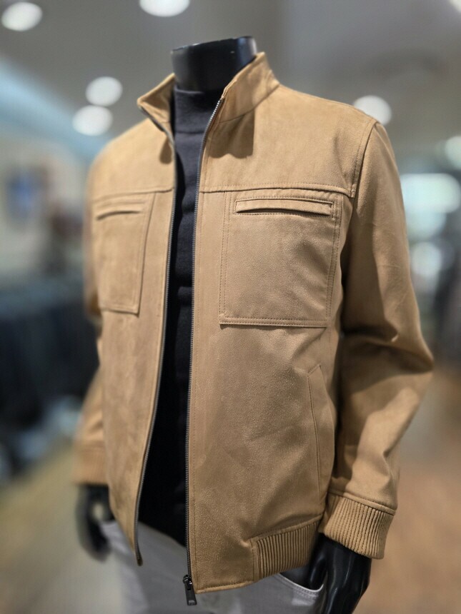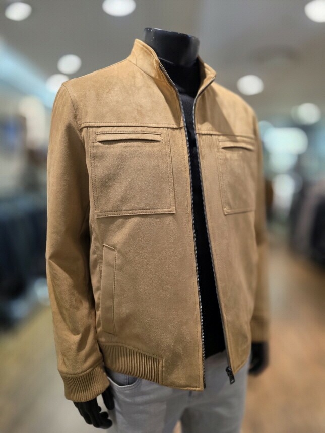 [바쏘옴므] 25년 카멀 헨리넥 비건레더 스웨이드 블루종 점퍼