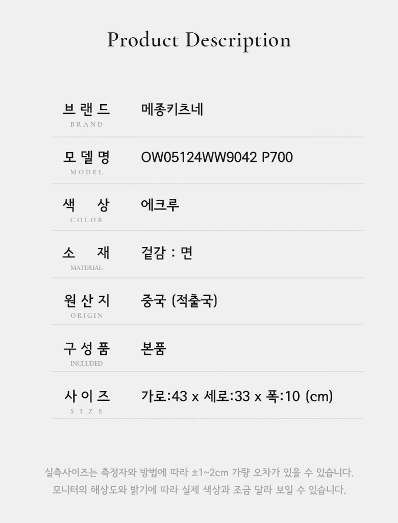 | 4. 크기 | 상세페이지 참조 |