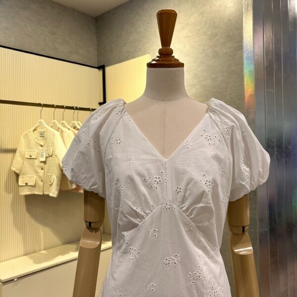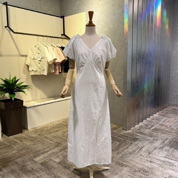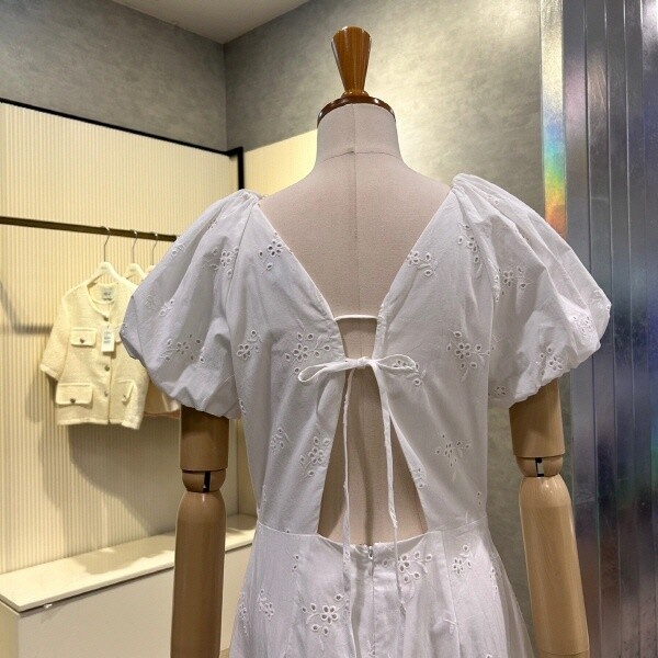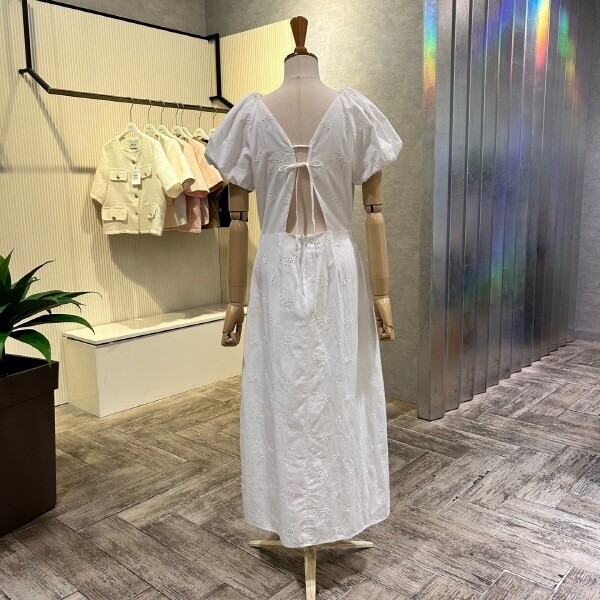 2025년 S/S 신상 펀칭 자수 백 트임 롱 원피스?입니다. 여성스러운 원피스로 포인트 아이템 입니다.