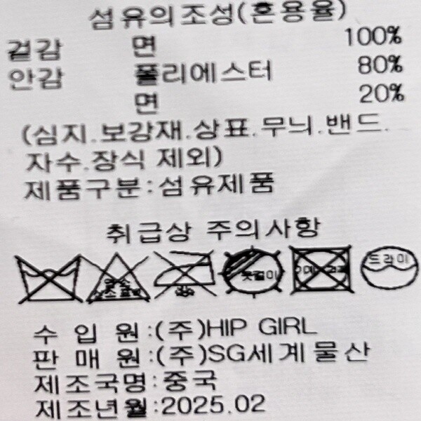제조자 : (주)HIP GIRL