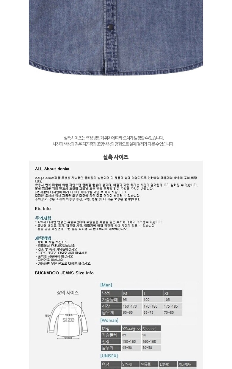 [버커루] 남성) 투포켓 M톤 데님 셔츠 (B251DS372P)