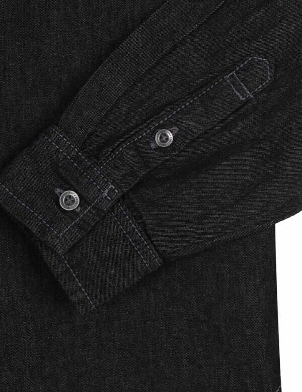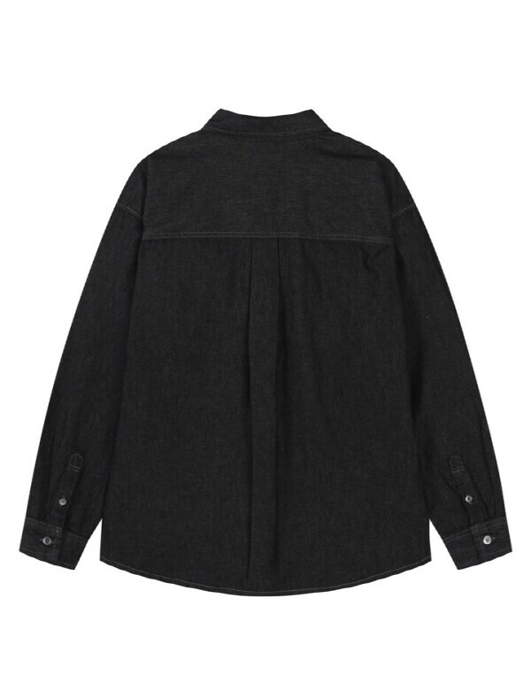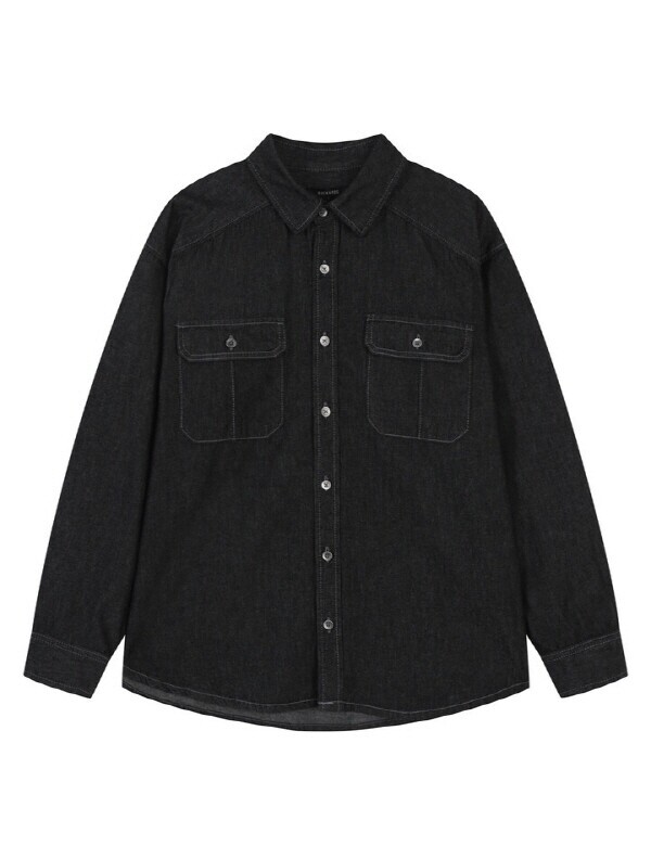 *클래식한 긴팔 데님 셔츠로 가슴 투포켓 디테일의 디자인에