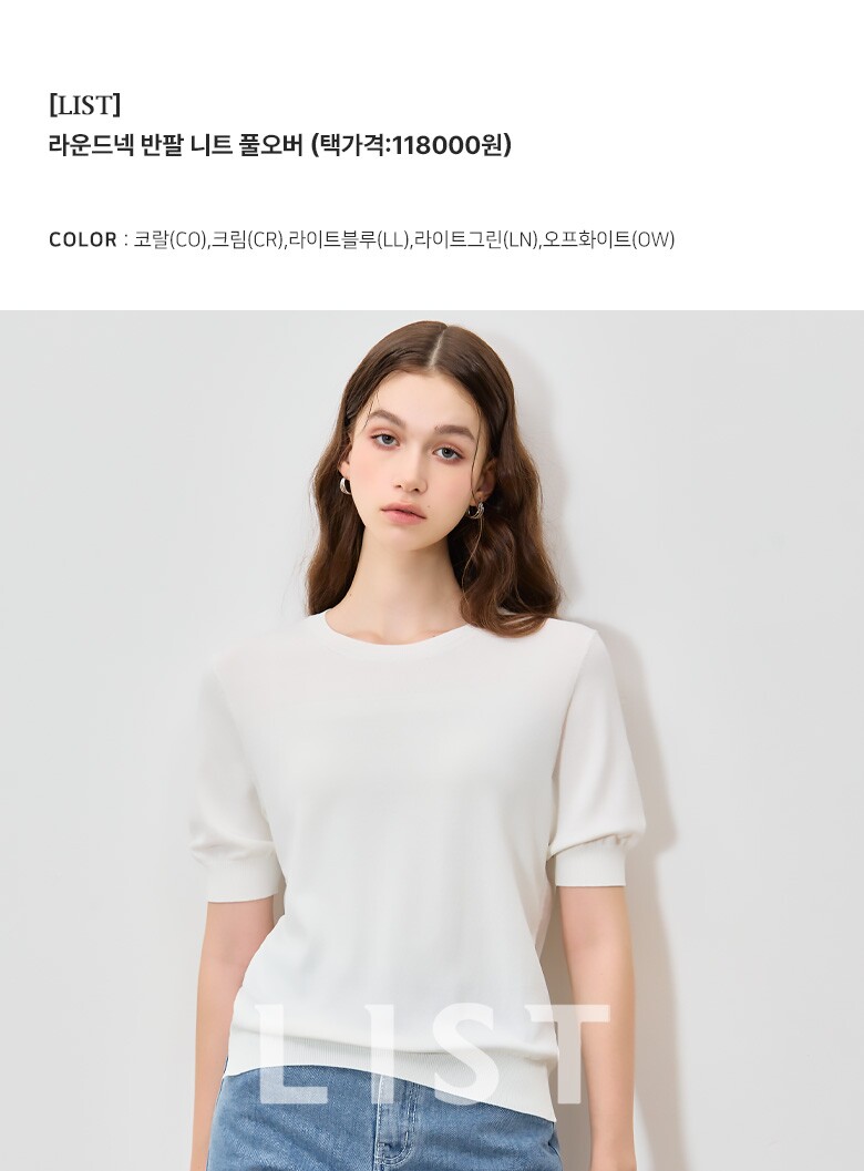 [리스트(LIST)] 스윗캔디 라운드넥 반팔 니트 풀오버 (택가격: 118000원)