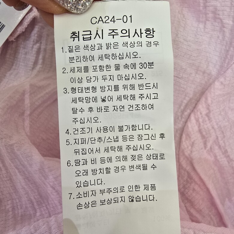 | 6. 세탁방법 및 취급시 주의사항 | 상품상세참조 |