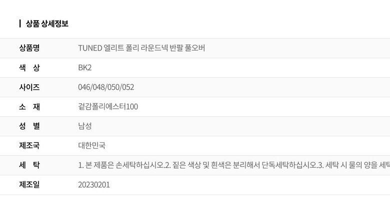 | 6. 세탁방법 및 취급시 주의사항 | 상세설명 참조 |