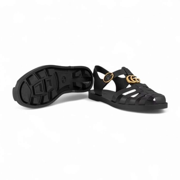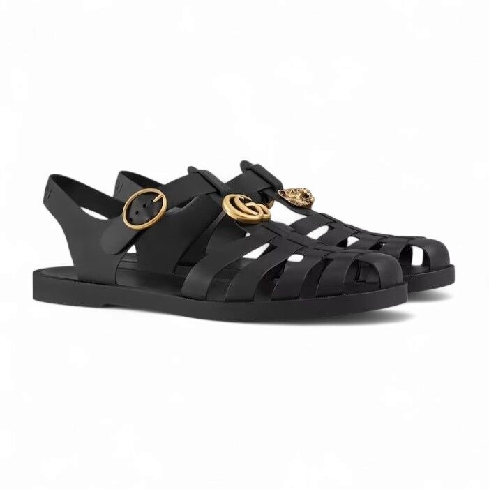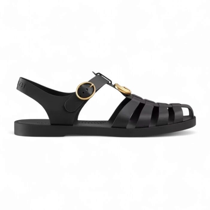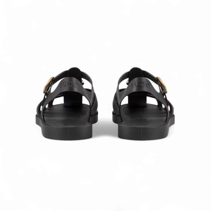 [명품] 구찌 남성 샌들 러버 버클 스트랩 샌들 블랙 골드메탈
