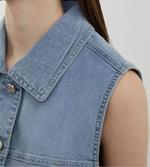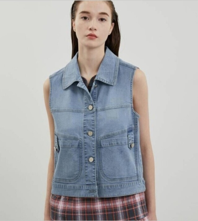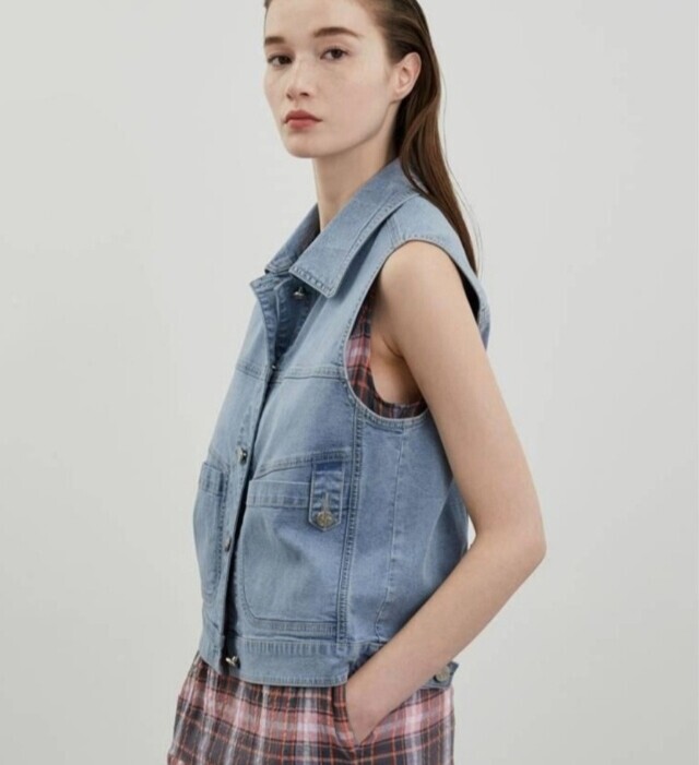 [올리비아로렌]카라 포켓 데님 베스트VVBQC4M3481