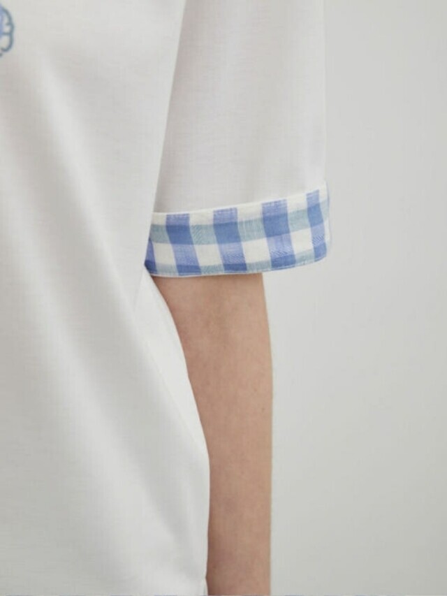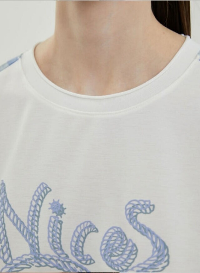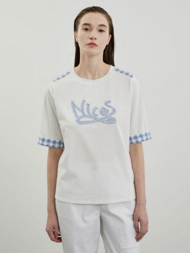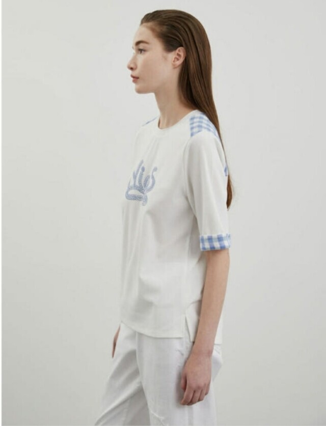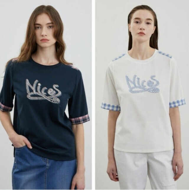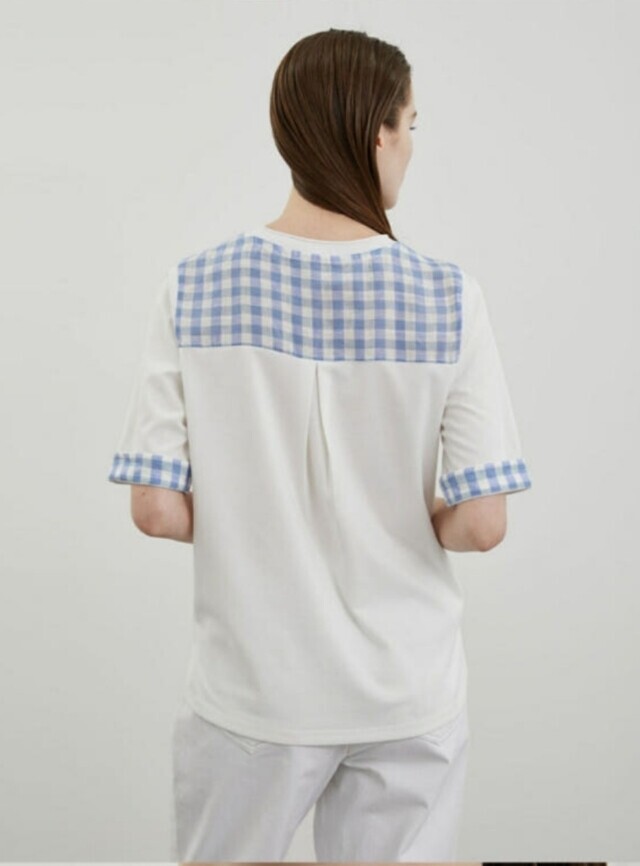 [올리비아로렌]체크 배색 프린팅 티셔츠VVCAS4M3371