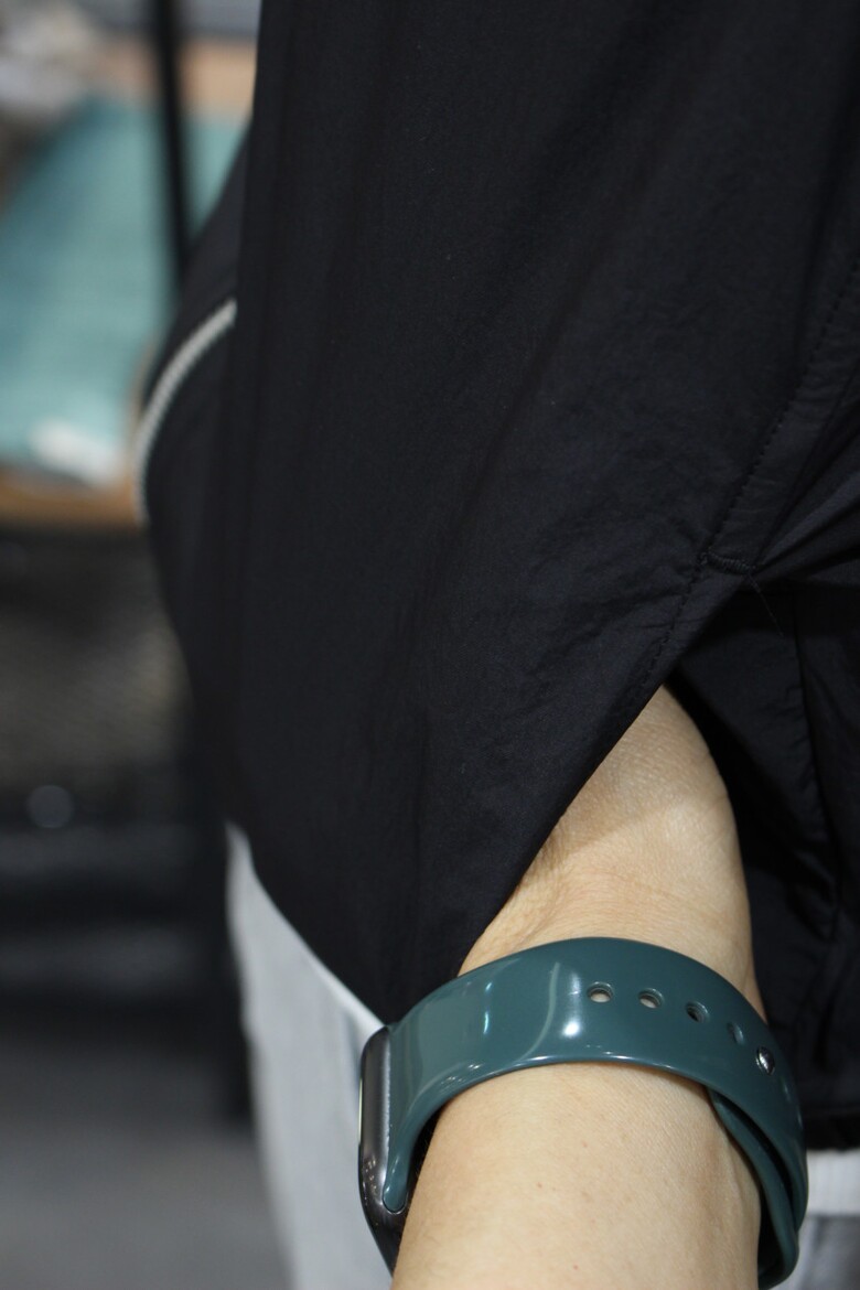 얇고 바스락거리는 폴리원단으로 무게감이 가볍고 비교적 시원한편입니다