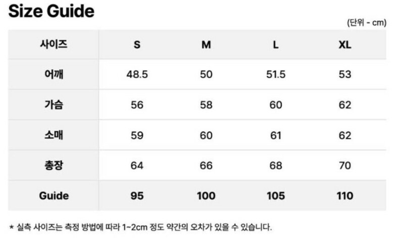 사이즈 : 95(S),100(M),105(L),110(XL)