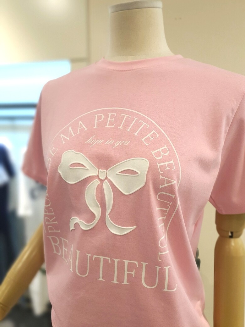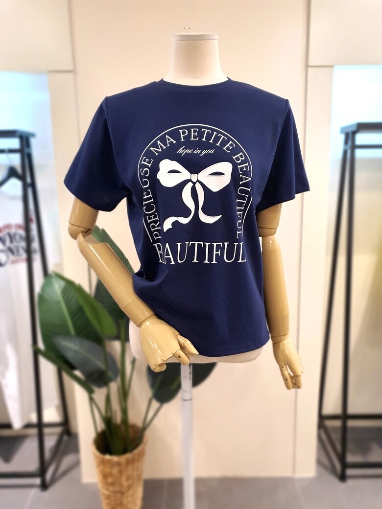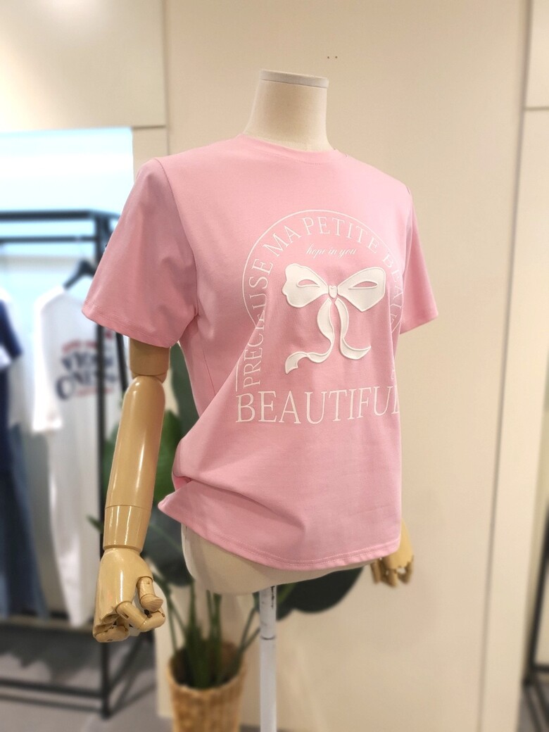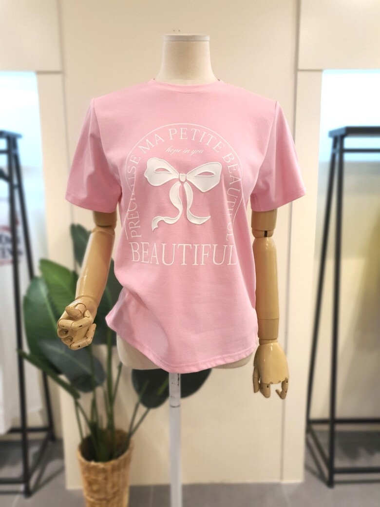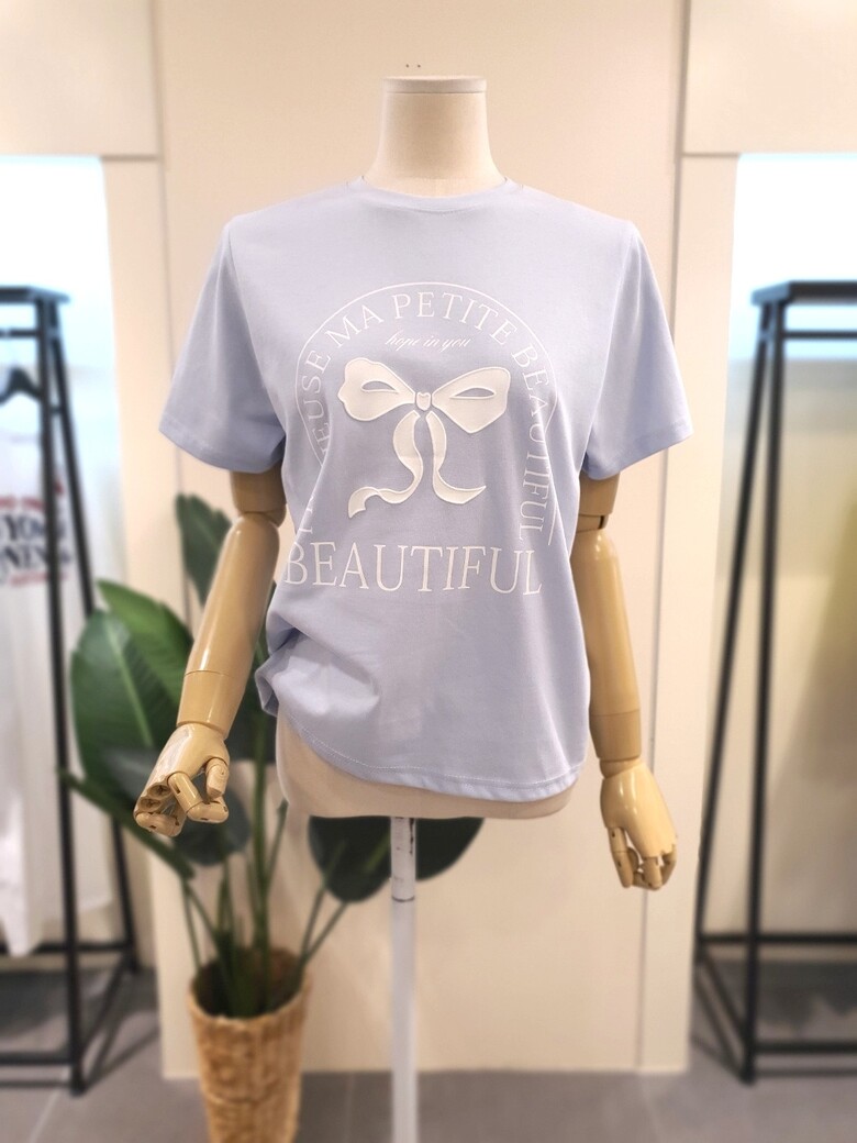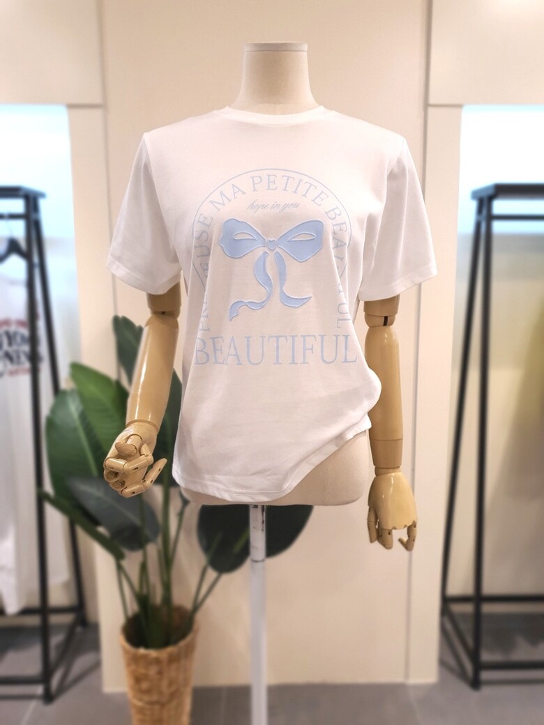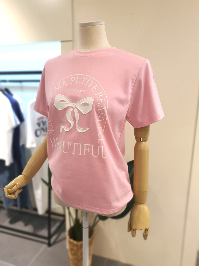 입체감이 있는 리본 프린팅 반팔 티셔츠입니다.
