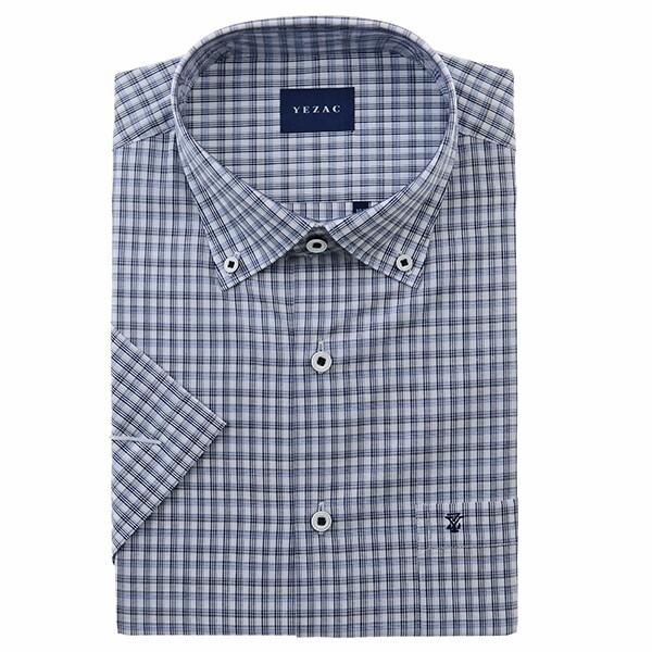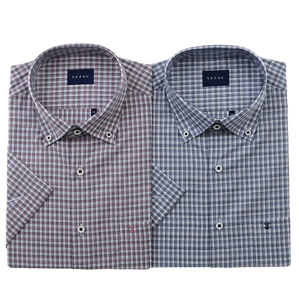 YJEMBA285_버튼다운 체크 밑단일자 일반핏 반소매