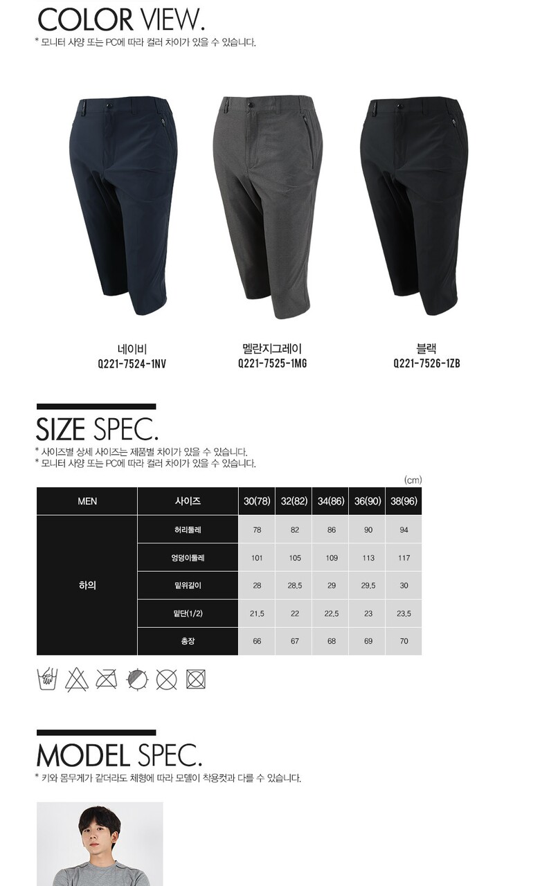 [PWX]Q221-7525-1MG 남성 벨트형 7부 팬츠