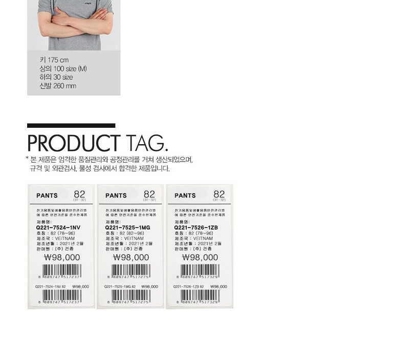 1. 제품 소재 (섬유의 조성 또는 혼용률을 백분율로 표시, 기능성인 경우 성적서 또는 허가서) | 상세페이지 표기 |