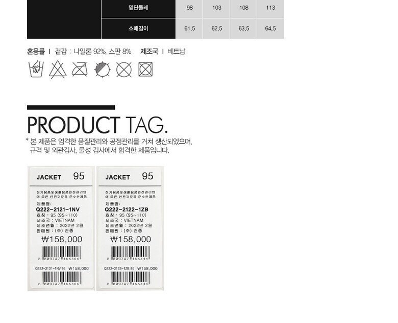 6. 세탁방법 및 취급시 주의사항 상세페이지 표기