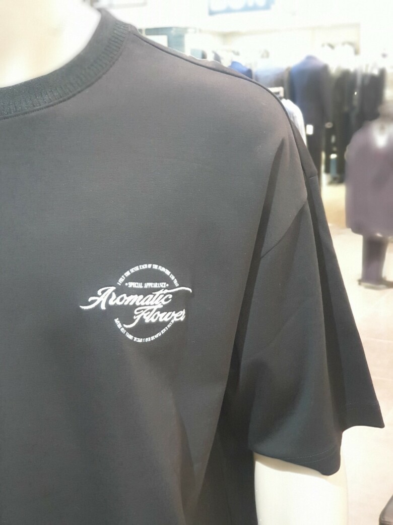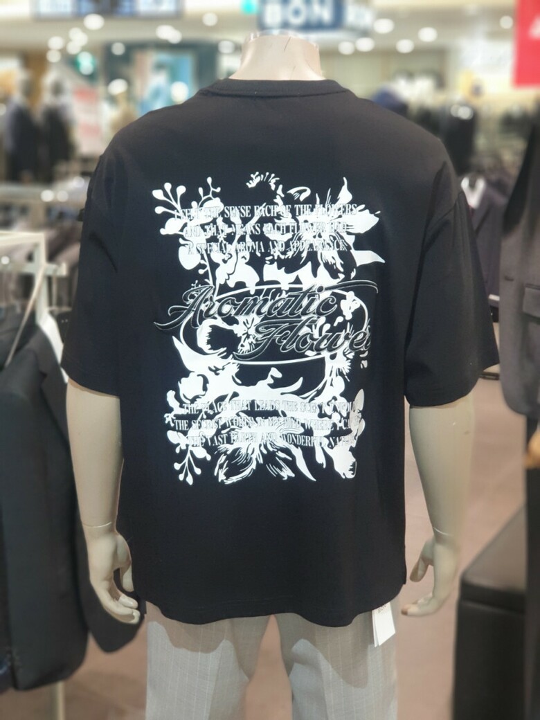 BON 24SS 블랙 고급 면 100%로맨틱 플라워 오버 핏 라운드 티셔츠 BN4MTS781BK