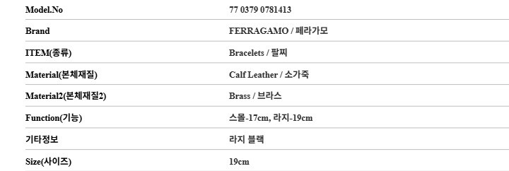 페라가모 77 0379 0781413 (770379 781413) 간치니 라지 블랙 가죽 팔찌