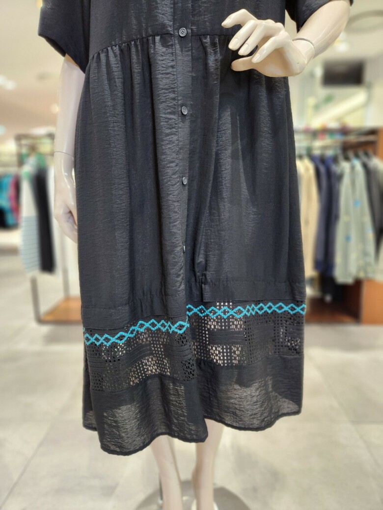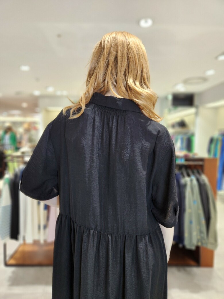 몸선을 따라 자연스럽게 흐르는 레이온 혼방소재를 사용하여