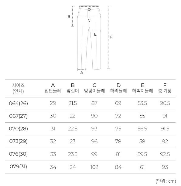 사이즈 : 64(25),67(26),70(27~28),73(28~29),76(30),79(31)