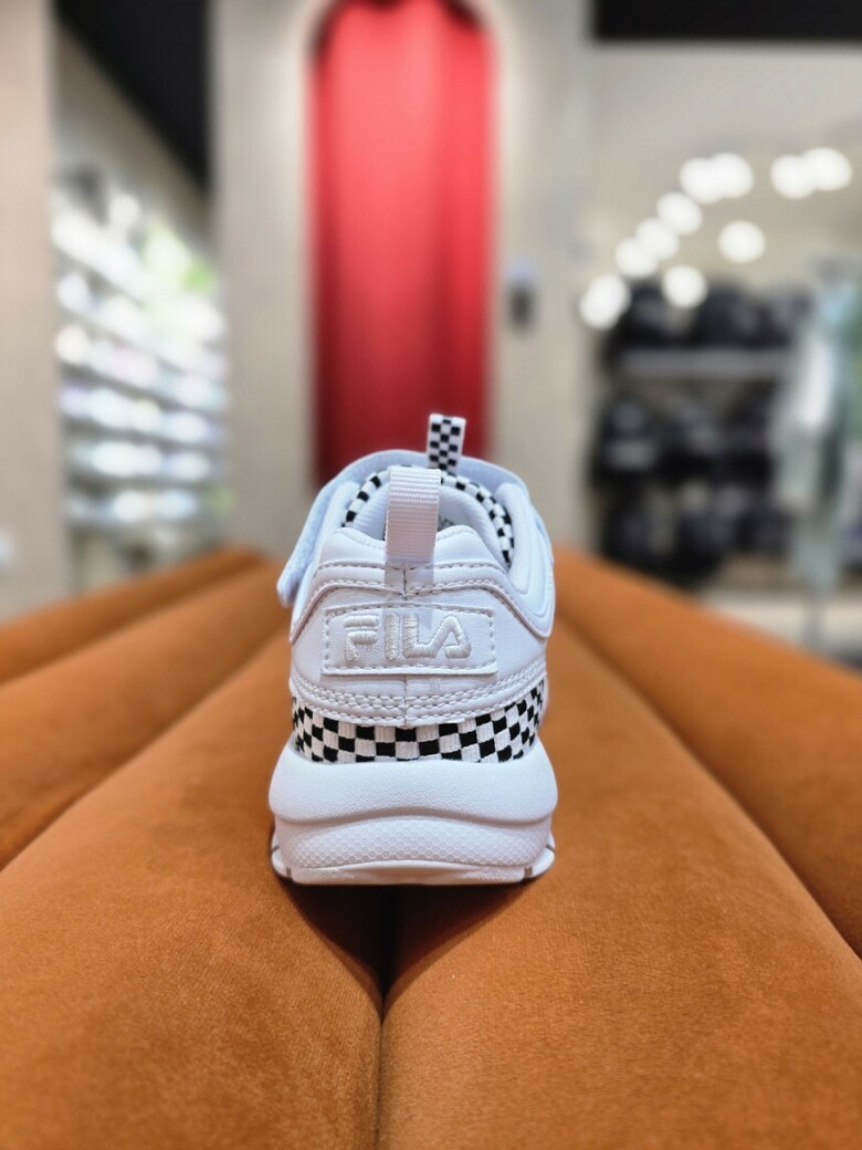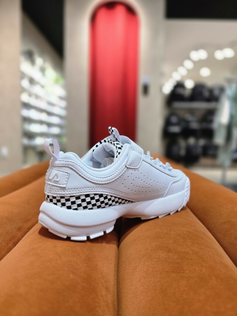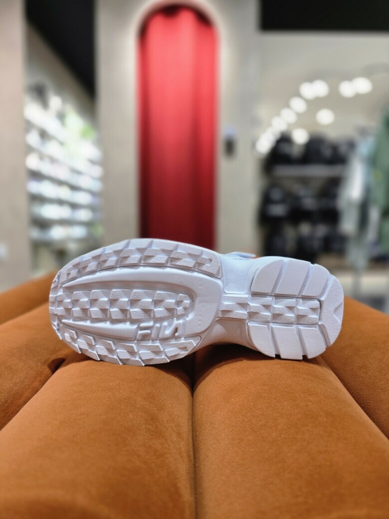 - 1998년 처음 탄생한 디스럽터는 아이코닉한 톱니 모양의 오버솔과 측면의 플래그 패턴으로 휠라만의 헤리티지를 표현