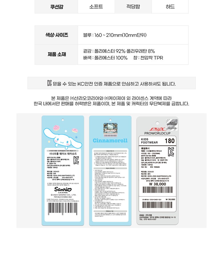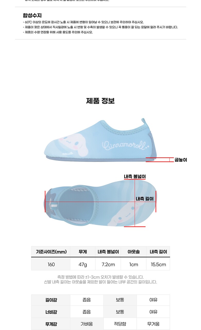 [PWX]PWX키즈 시나모롤 웨이브 워터슈즈(BU)