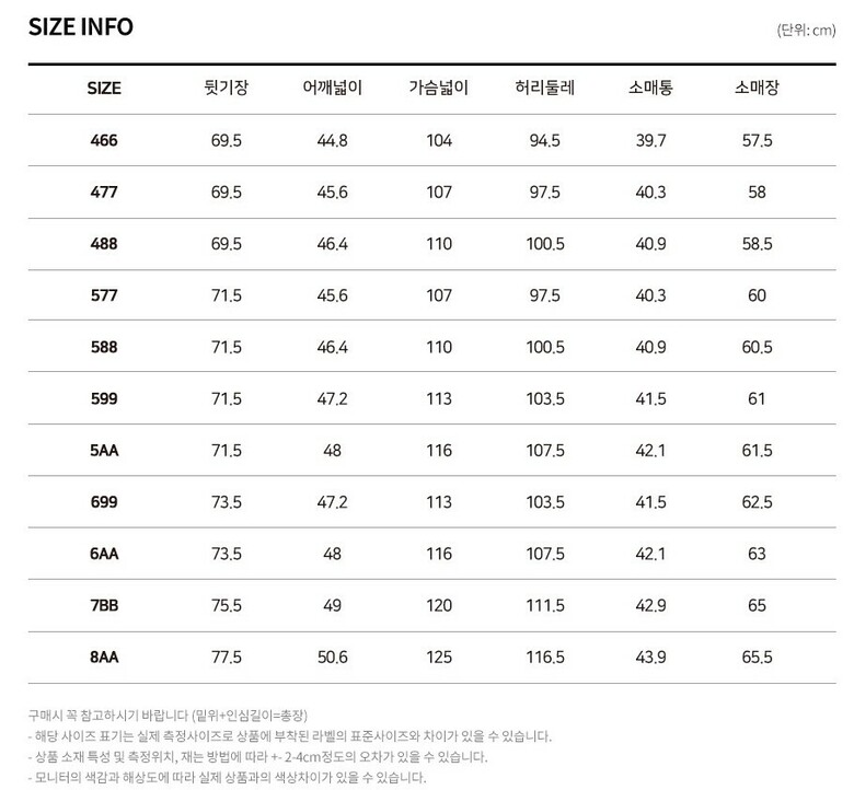 | 6. 세탁방법 및 취급시 주의사항 | 케어라벨참조 |