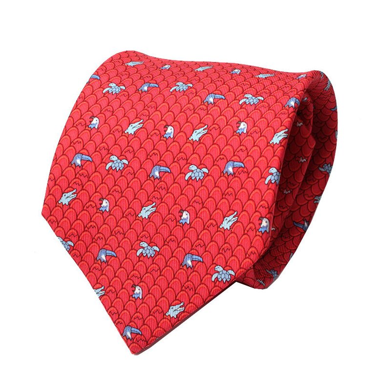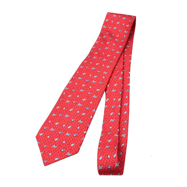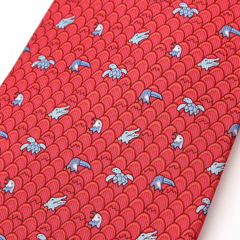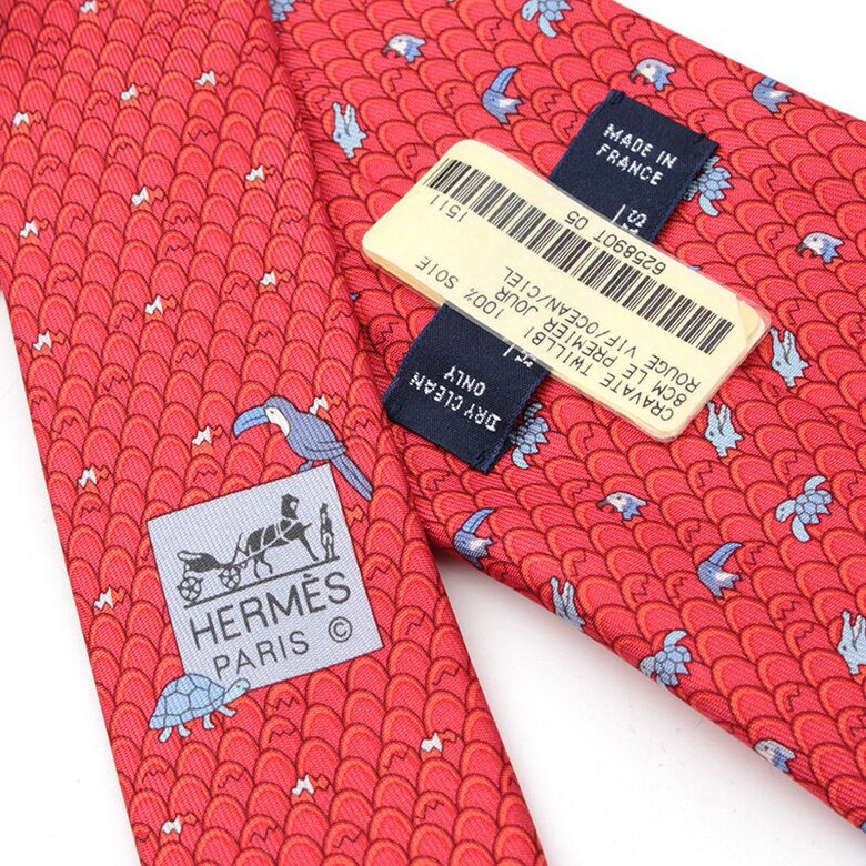 [중고명품] 에르메스 레드 웨이브 실크 넥타이