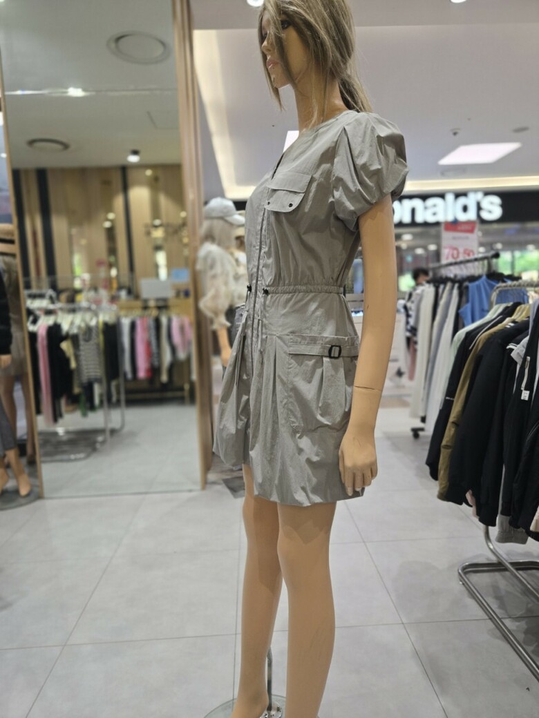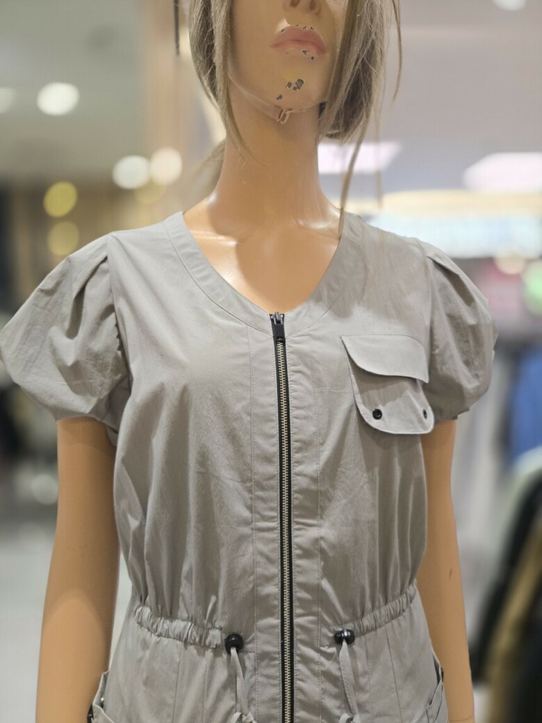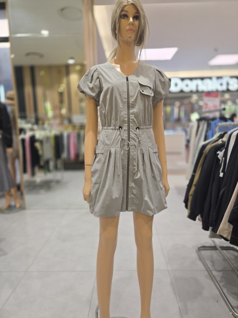 소매 볼륨 오픈 지퍼 미니 원피스 EQ2WO-663