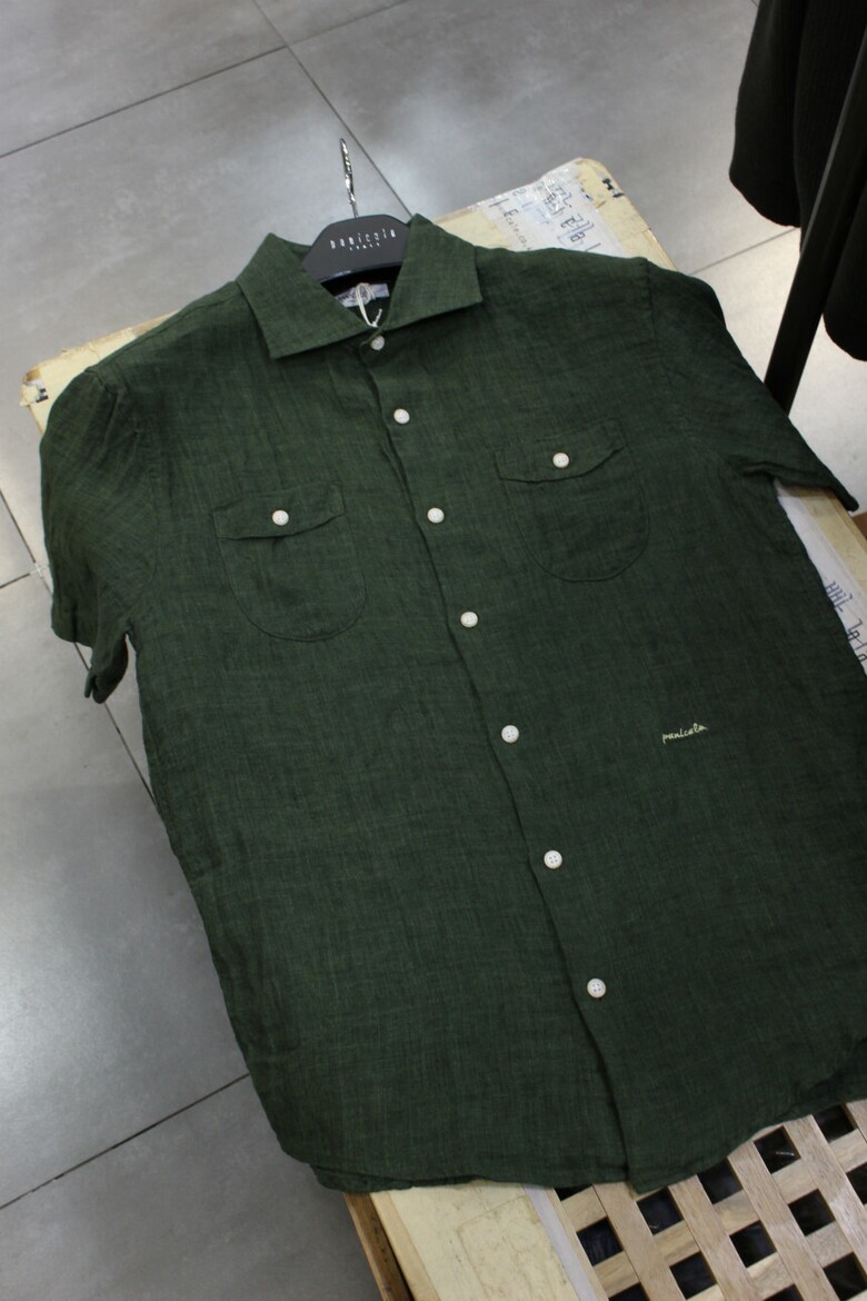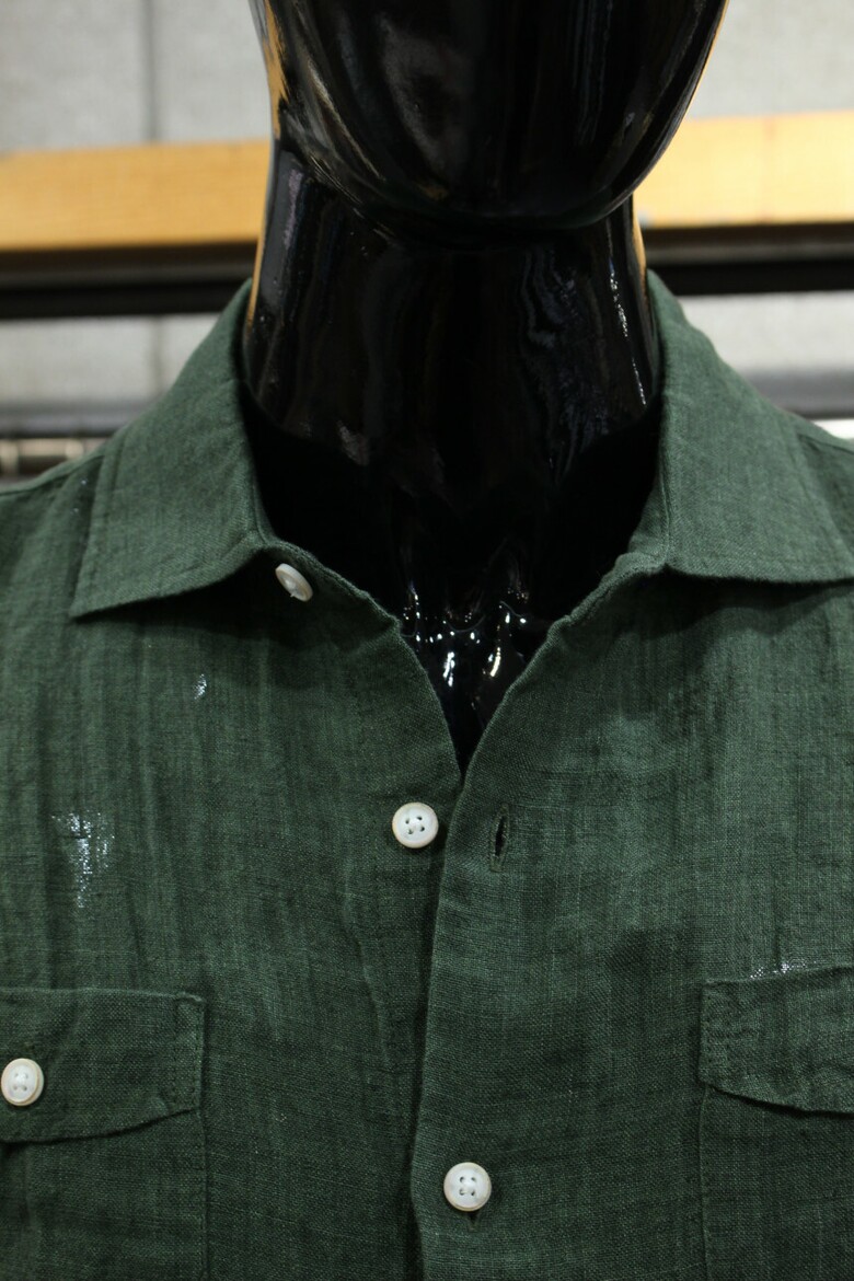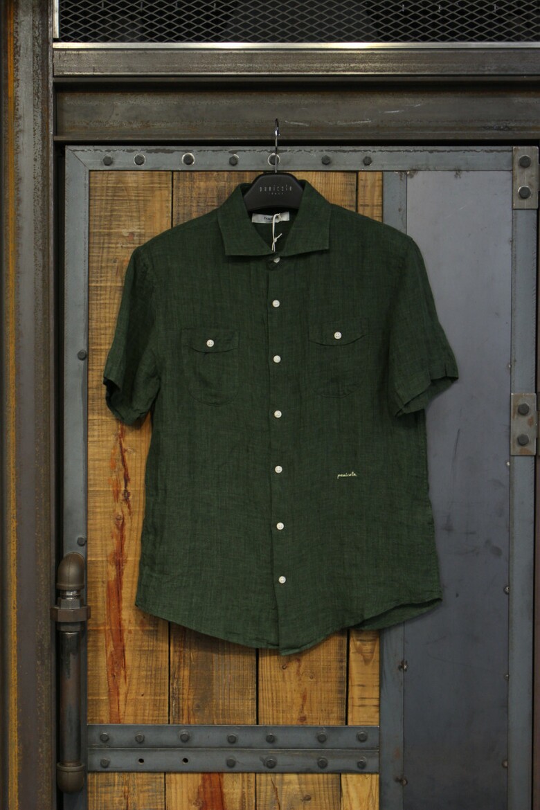 카키그린 투포켓 반팔린넨셔츠 d-qcsh15ka
