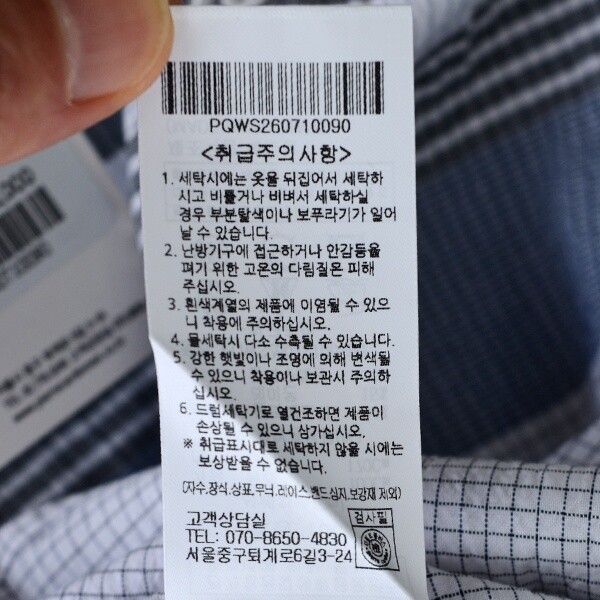 세탁방법 및 취급시 주의사항 : 본 상품 케어라벨 참조