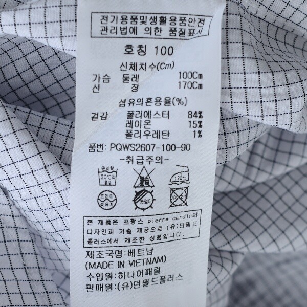 제품소재 : 폴리에스터 84%, 레이온 15%, 폴리우레탄 1%