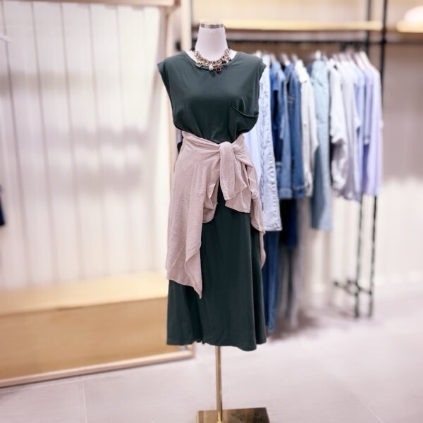 민소매 원피스지만어깨를 거의 감싸주는 디자인이라 부담없이 착용하시기 좋아?데일리룩으로 손색없는 요아이"