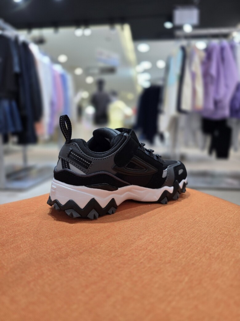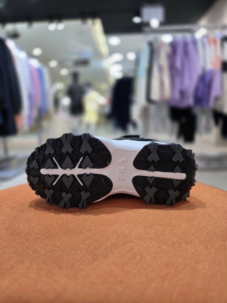 - 트레킹화를 연상시키는 과감한 아웃솔과 복잡한 패턴의 갑피 디자인의 조화가 돋보이는 제품