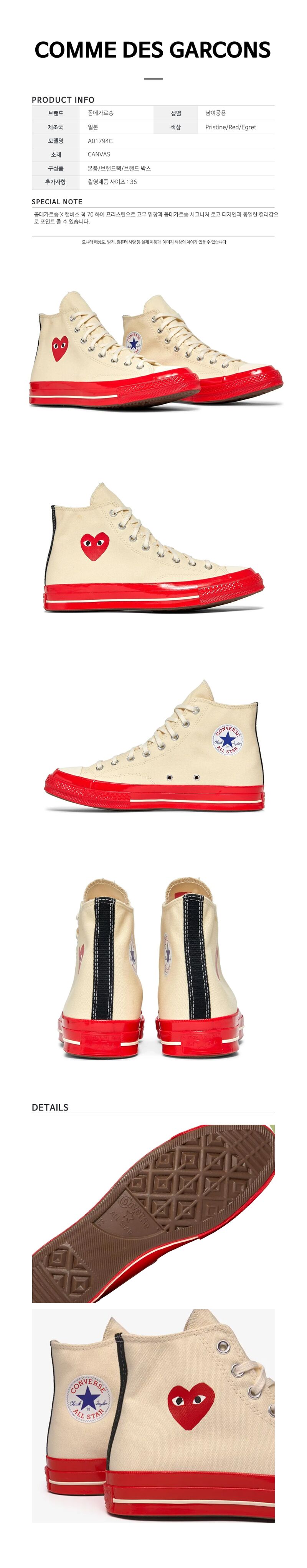 [명품] 꼼데 가르송 컨버스 척 70 하이 스니커즈 레드솔 아이보리 A01794C