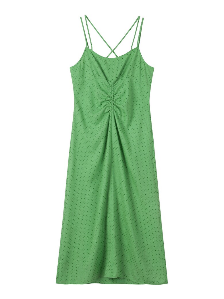 - 앞중심에 셔링을잡아 자연스럽게 드레이프지는 실루엣의 원피스입니다.